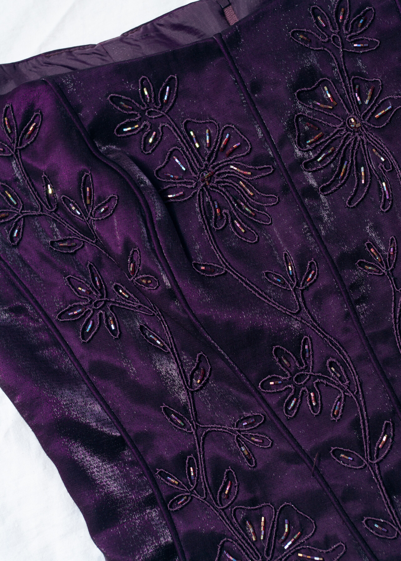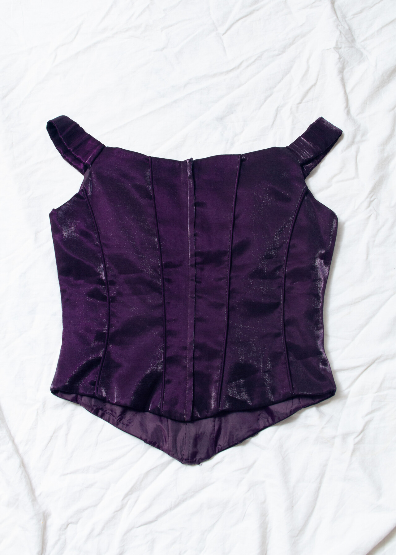 Vintage Y2K Corset Top in Purple with Flower Embroidery