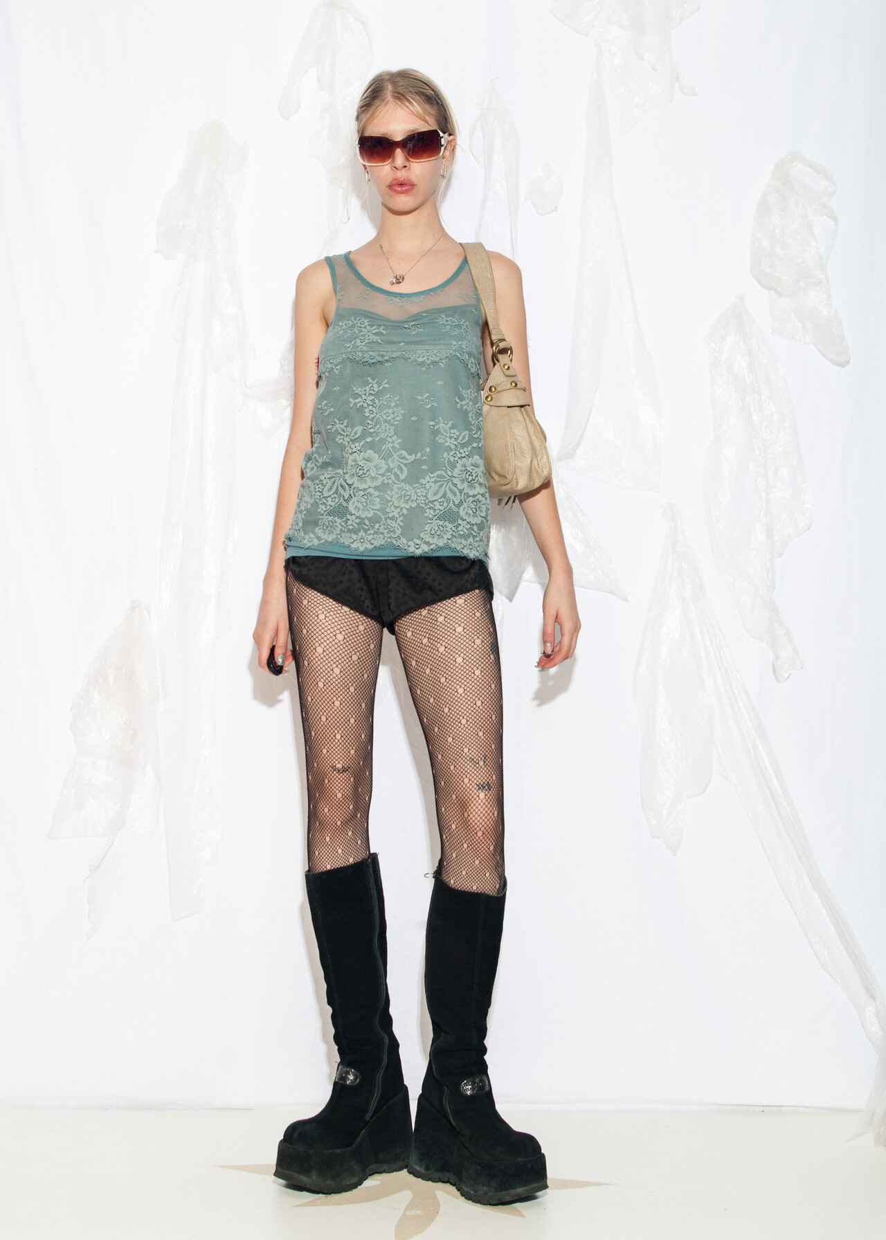 Tags: 2000s style clothing, cute coquette outfit, European vintage, Intimissimi, layered tank top, natural fabric, partywear, pastel teal lace, whimsi twee look, whimsigoth, y2k vintage fashion