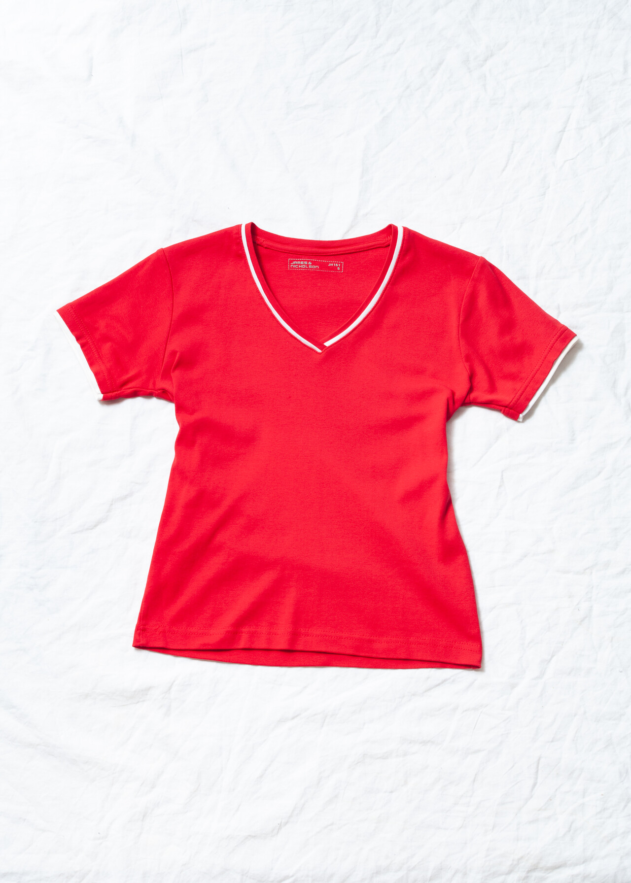 Tags: 2000s style clothing, minimalist look, red cotton baby tee, sporty coquette top, y2k grunge outfit, y2k vintage fashion