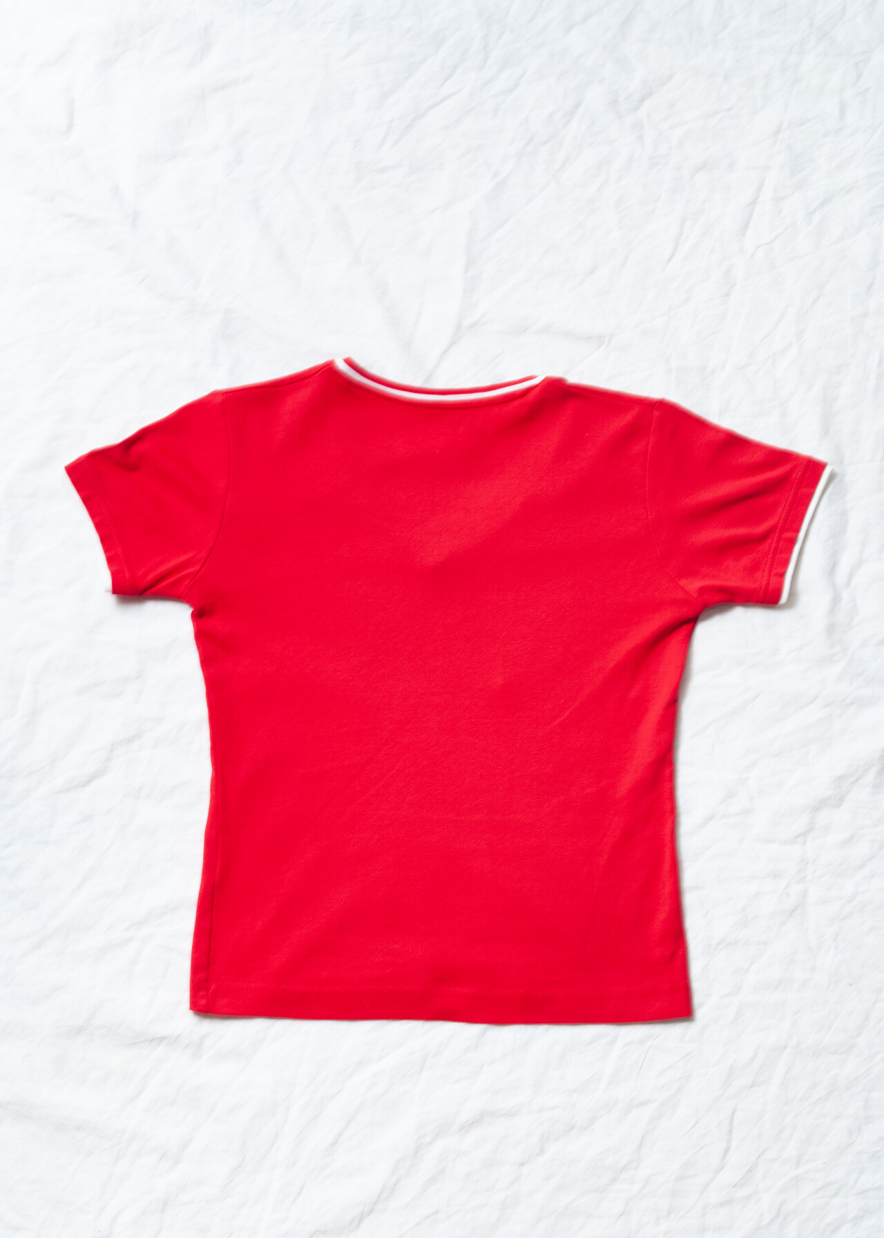 This Y2K vintage t-shirt is the red cotton baby tee that will have you feeling like the sporty coquette hero of your own early 2000s rom-com.