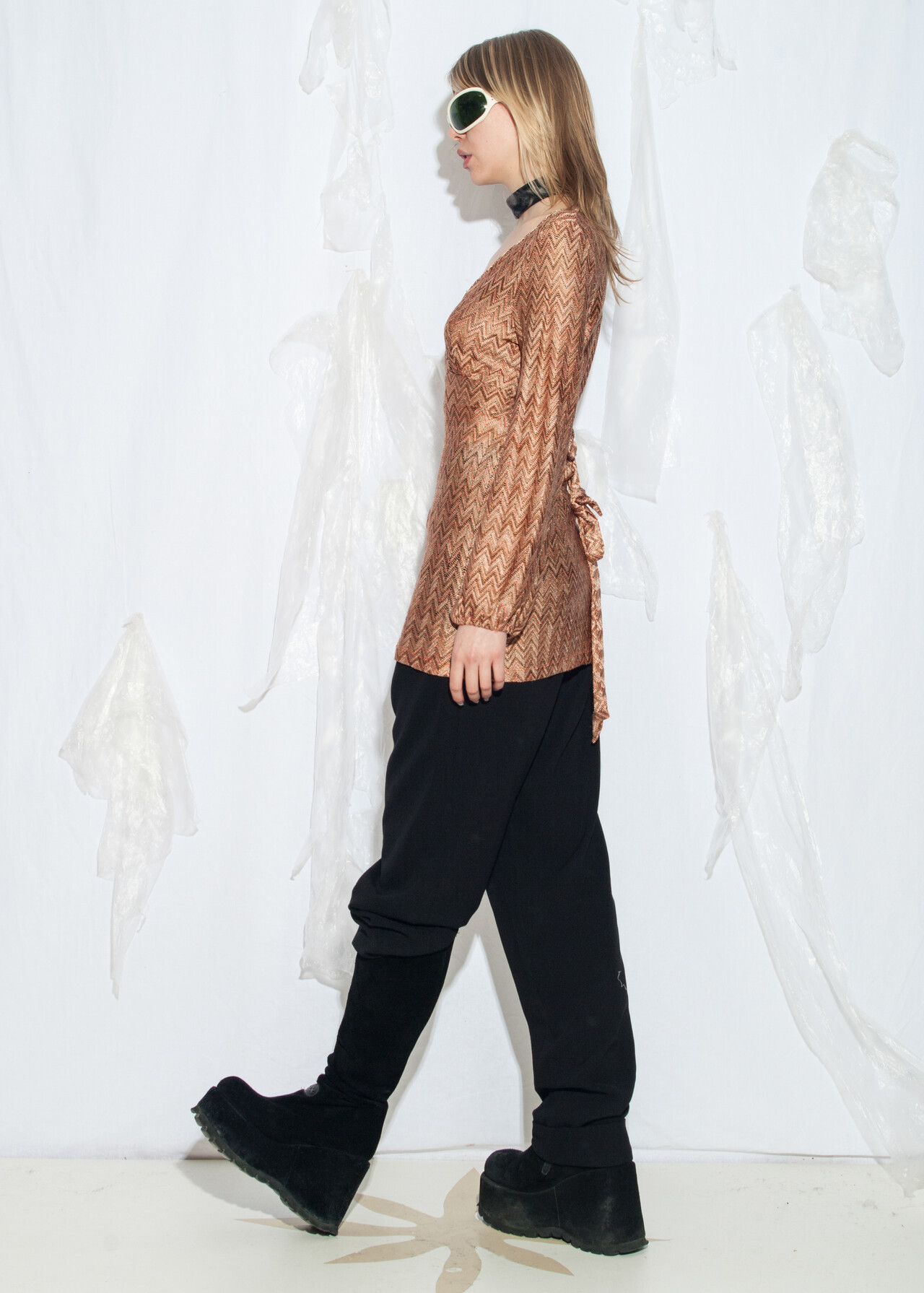 This Y2K vintage top is a shiny tunic masterpiece that blends elegant vibes with early 2000s flair, perfect for any fashionista ready to relive the days of flip phones and frosted tips.