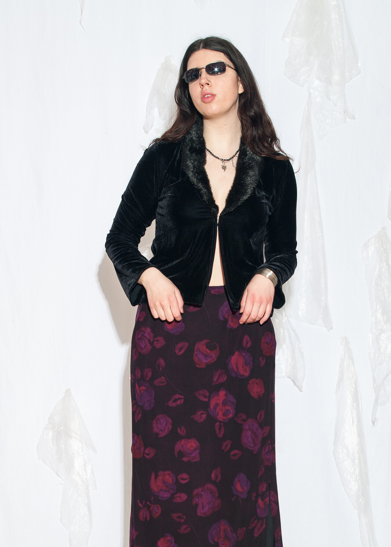This Y2K vintage top is serving whimsigoth realness with its faux fur collar and black velvet vibes, perfect for when you want to channel your inner early 2000s diva. Long sleeves and all, it’s ready to transport you back to a time when flip phones were the height of tech.