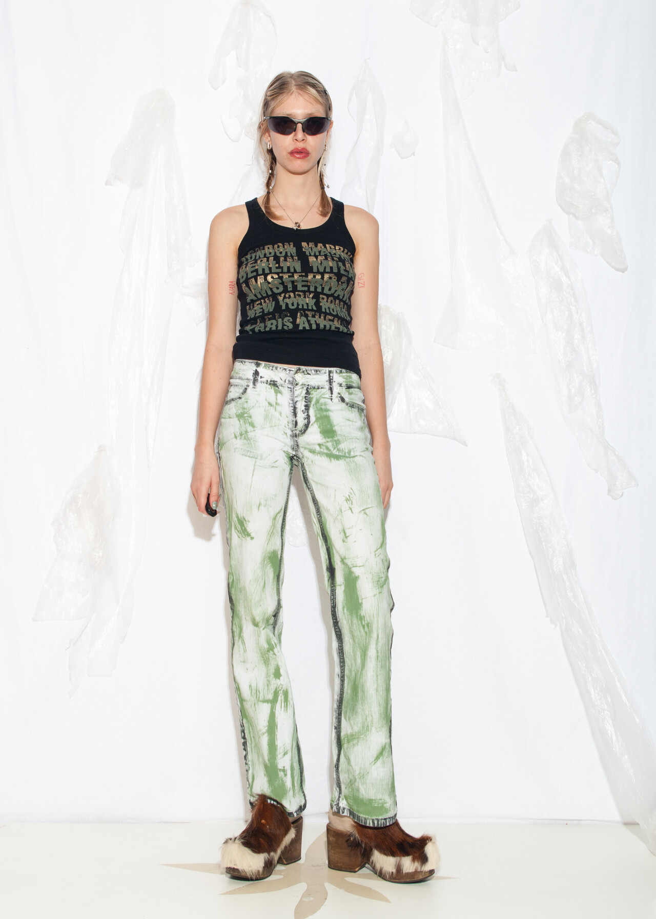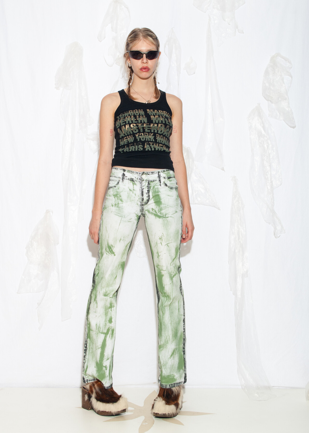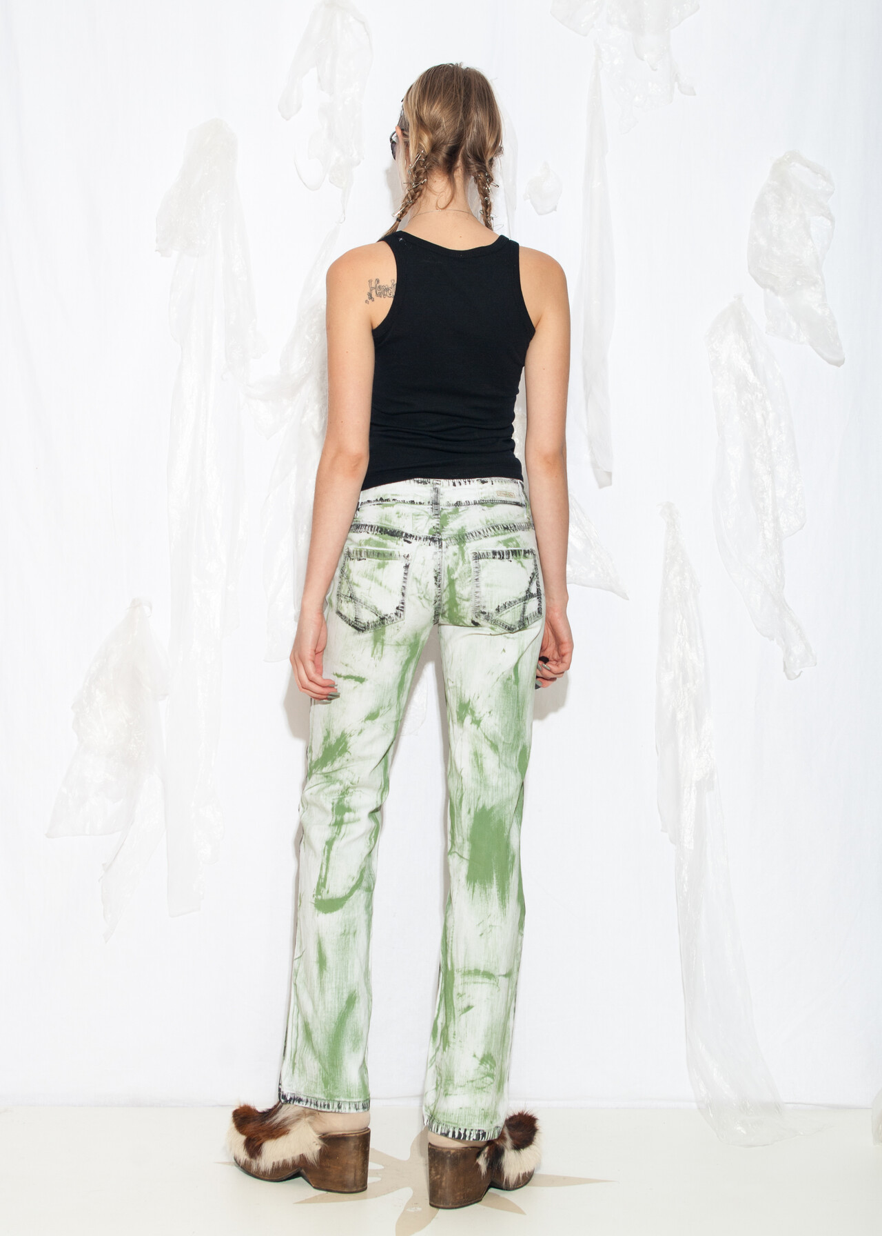 Be the first to review “Reworked Vintage Y2K Flare Jeans in Hand-Painted Green and White” Cancel reply