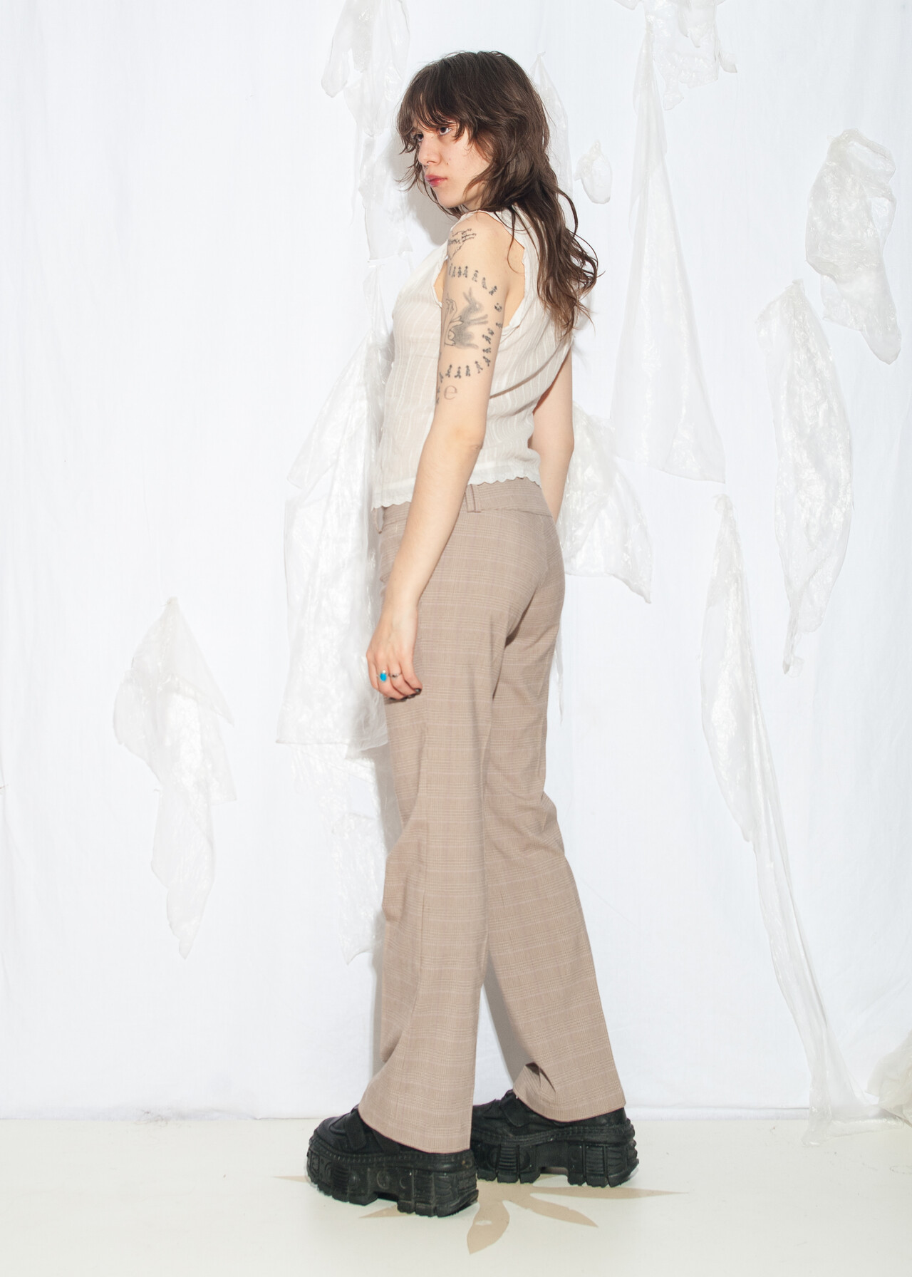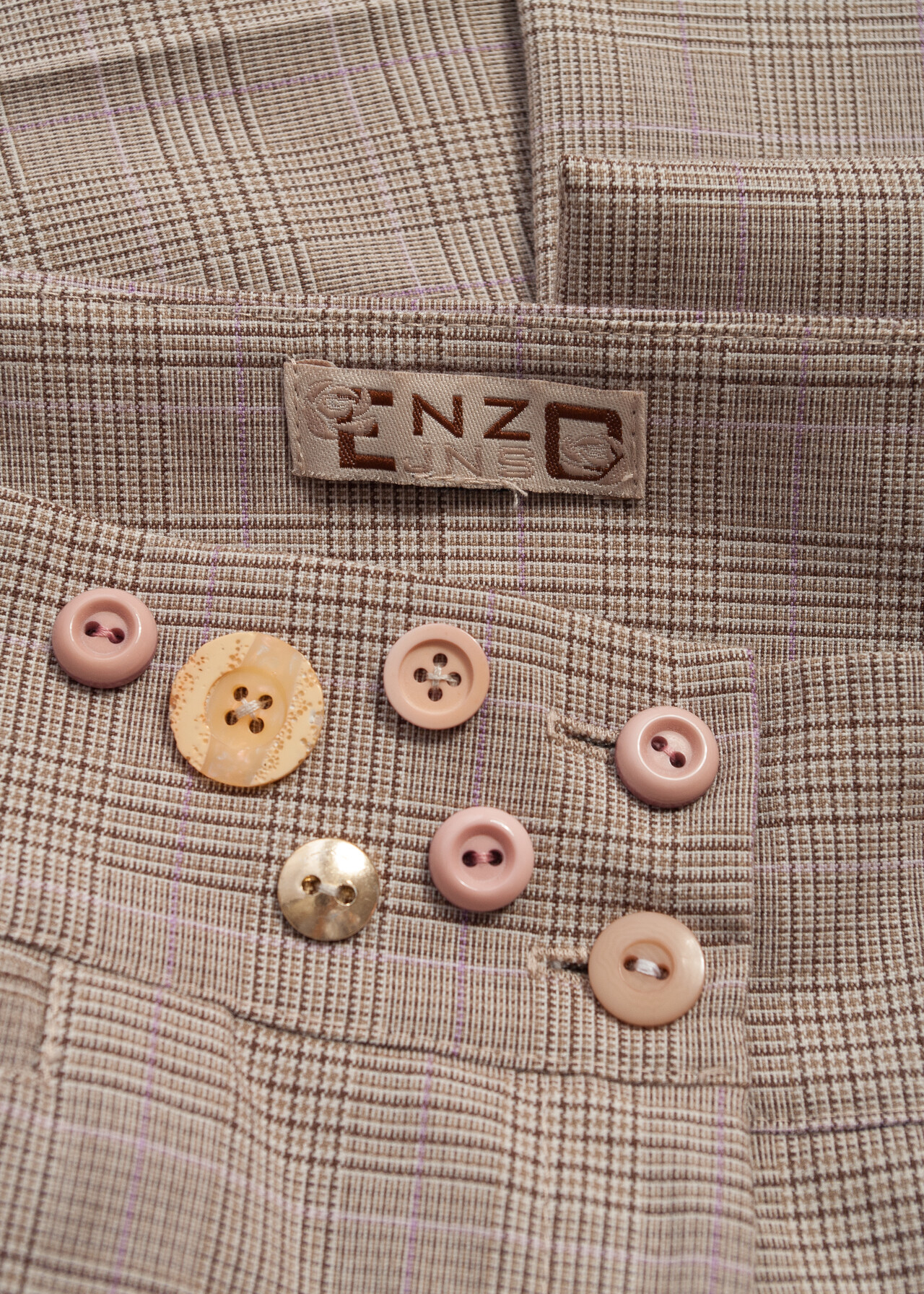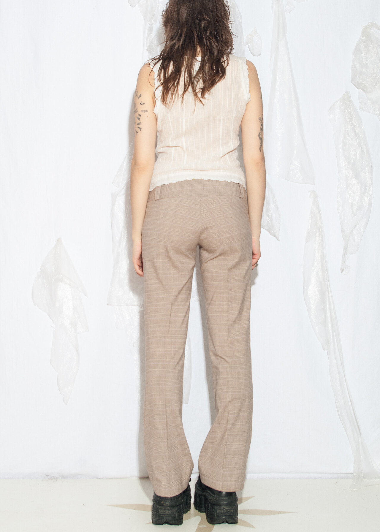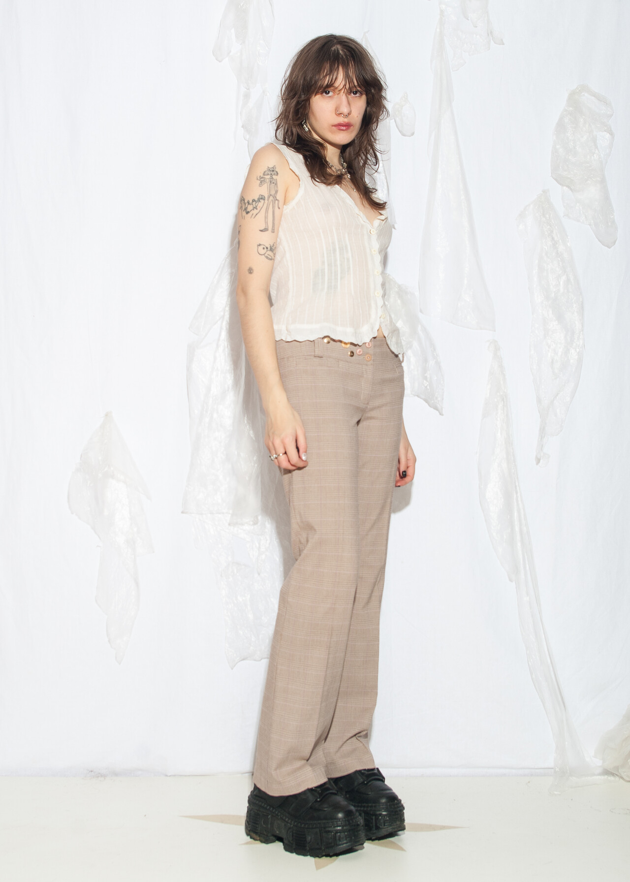 Tags: 2000s style fashion, button decorated, flare trousers, low rise waist, plaid bootcut pants, reworked, upcycled pants, whimsical aesthetic, y2k vintage clothing