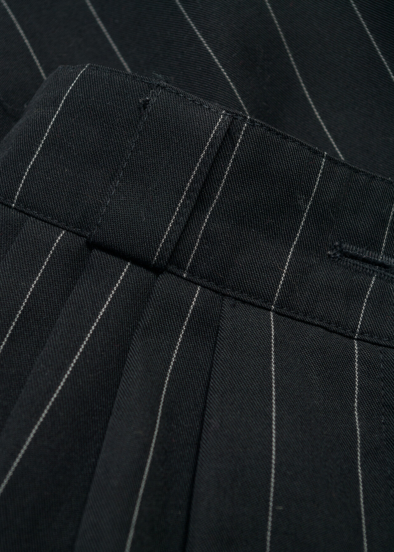 Vintage 80s Pinstriped Pleated Trousers in Black Wool Blend