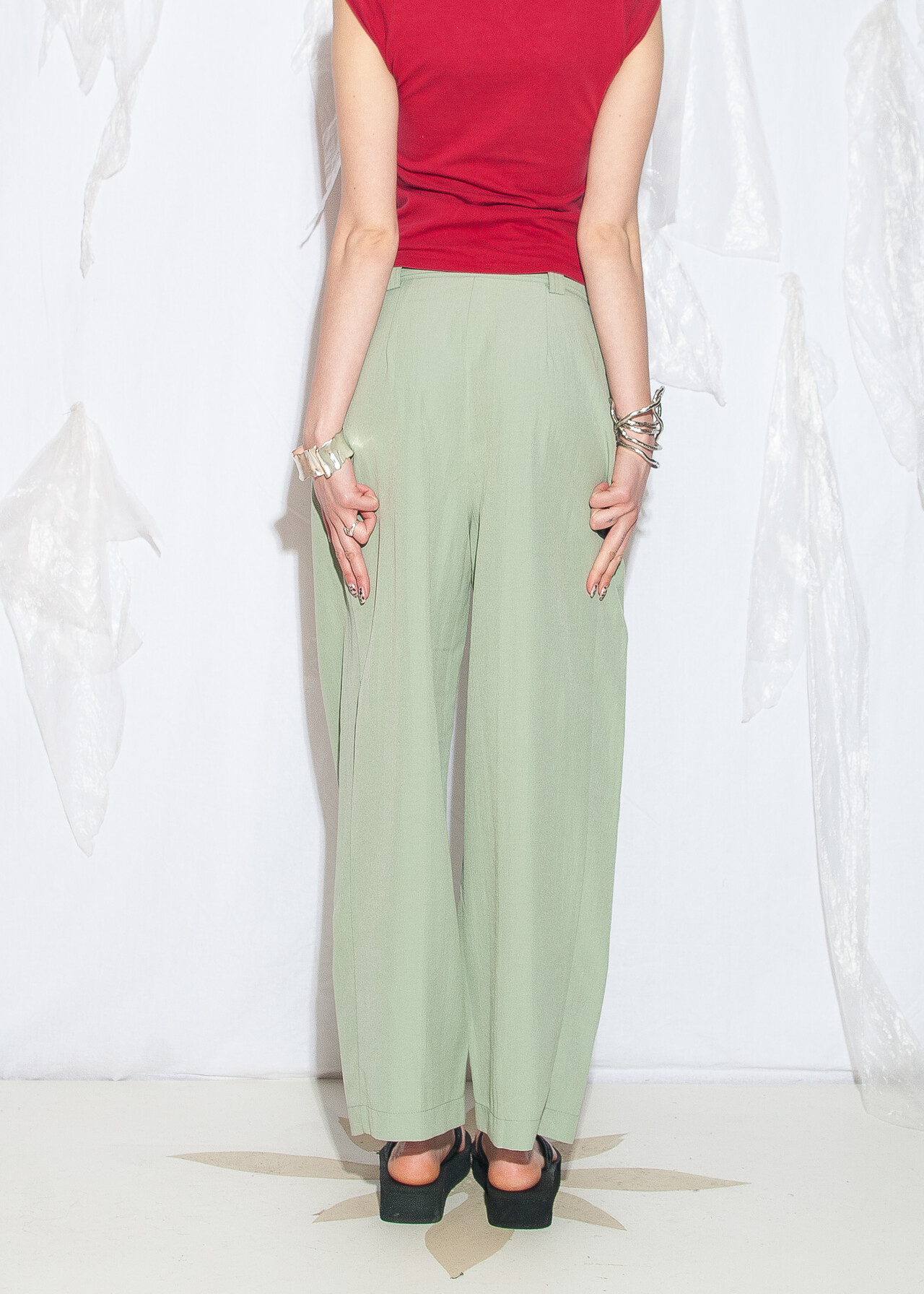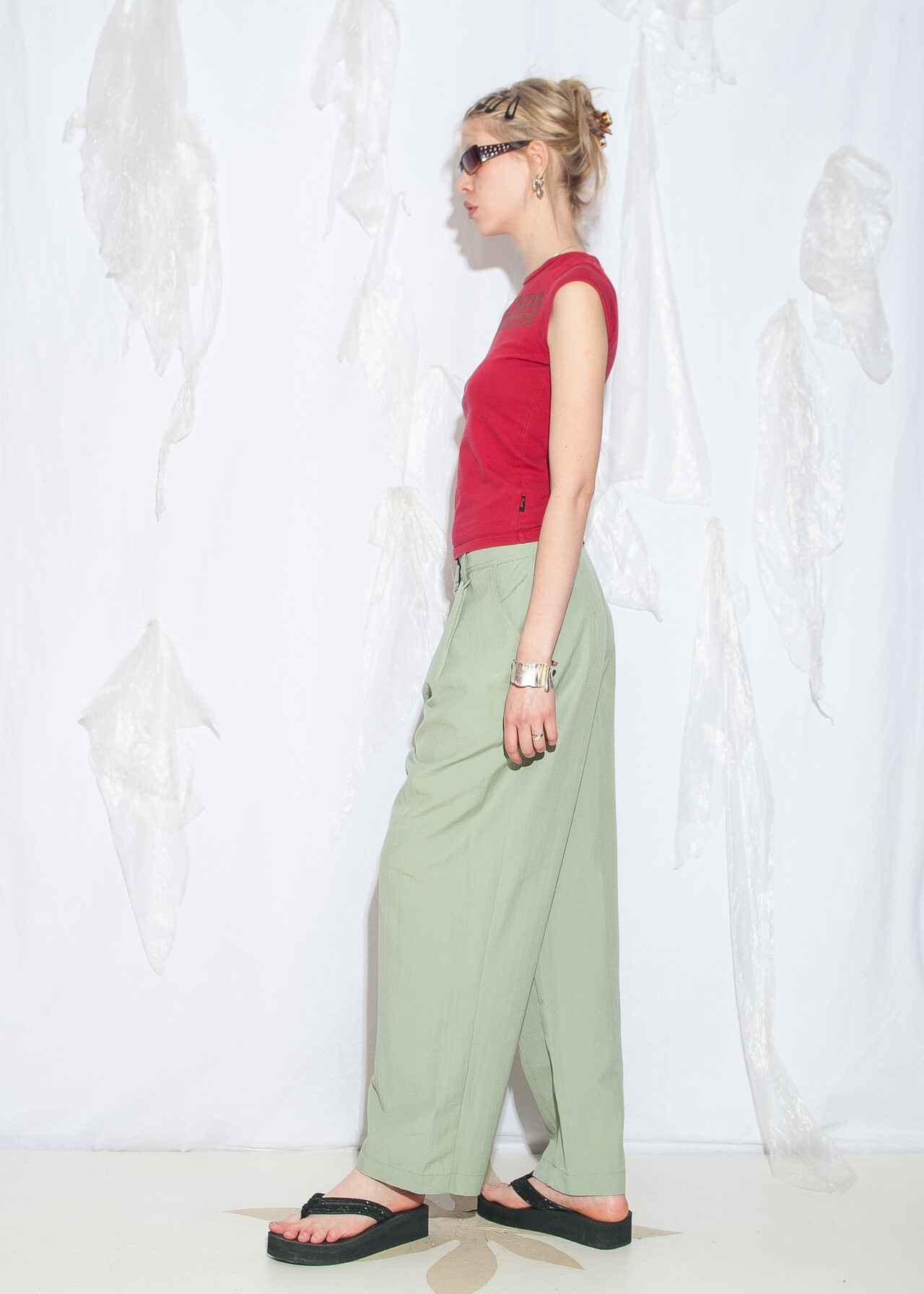 These 90s vintage trousers are the ultimate mint dream, with a pleated waist and a carrot style that’ll have you feeling like a real fashionista. Made from natural fabric, these barrel pants are basically a time machine back to the era of dial-up and funky beats.