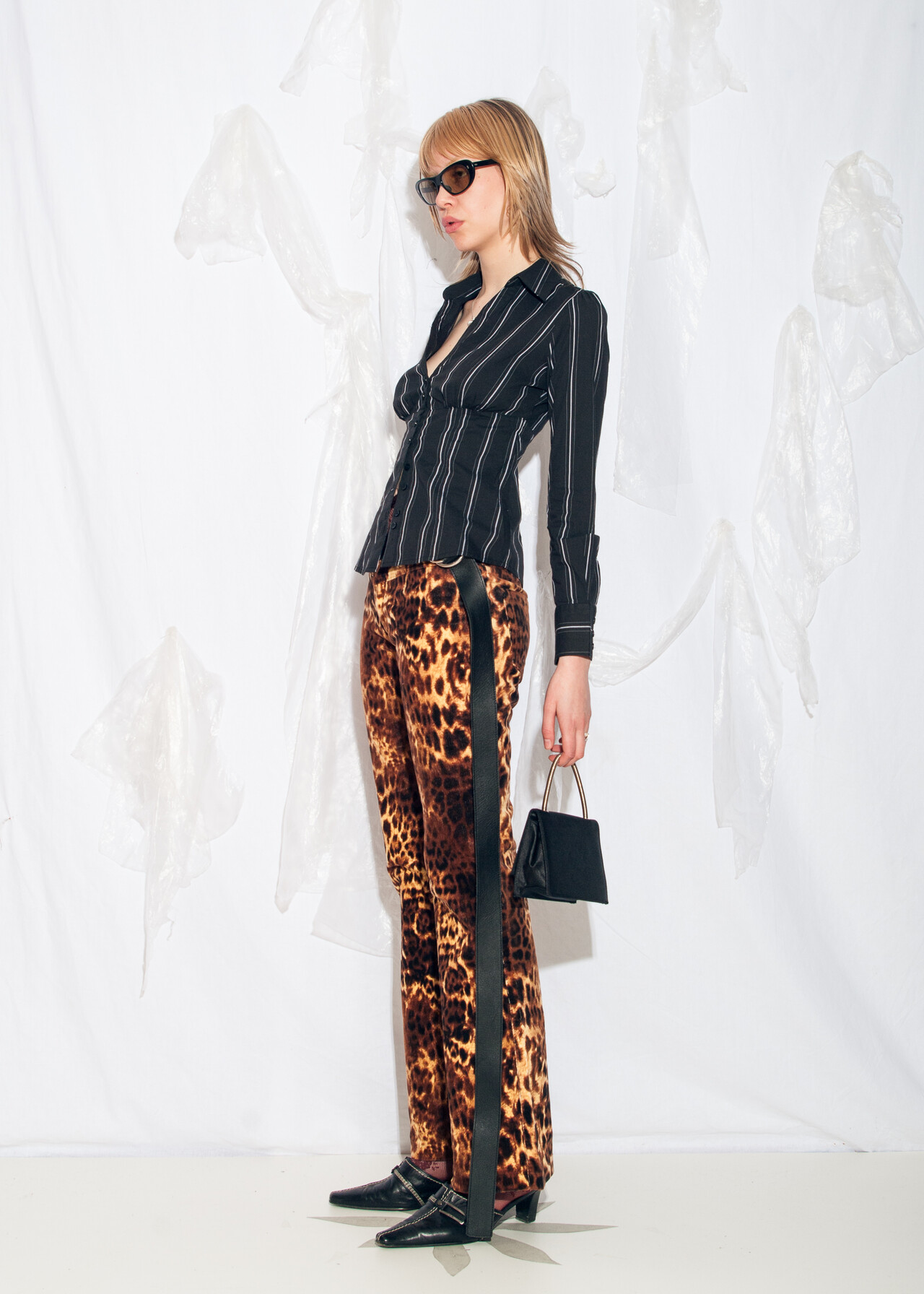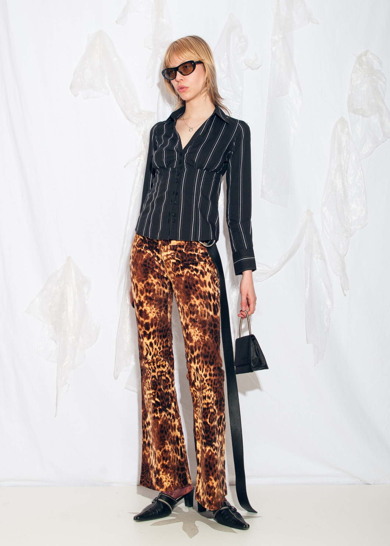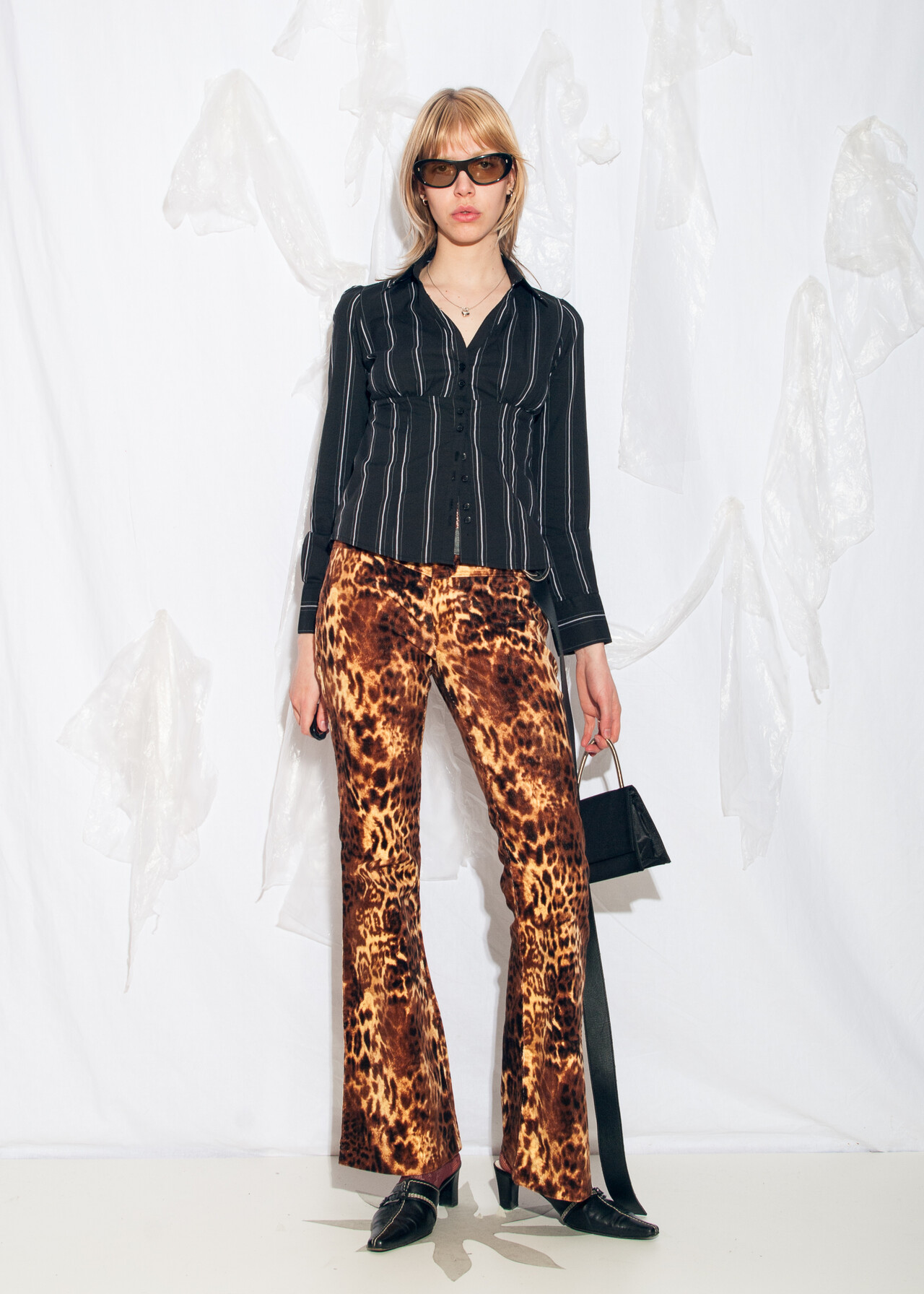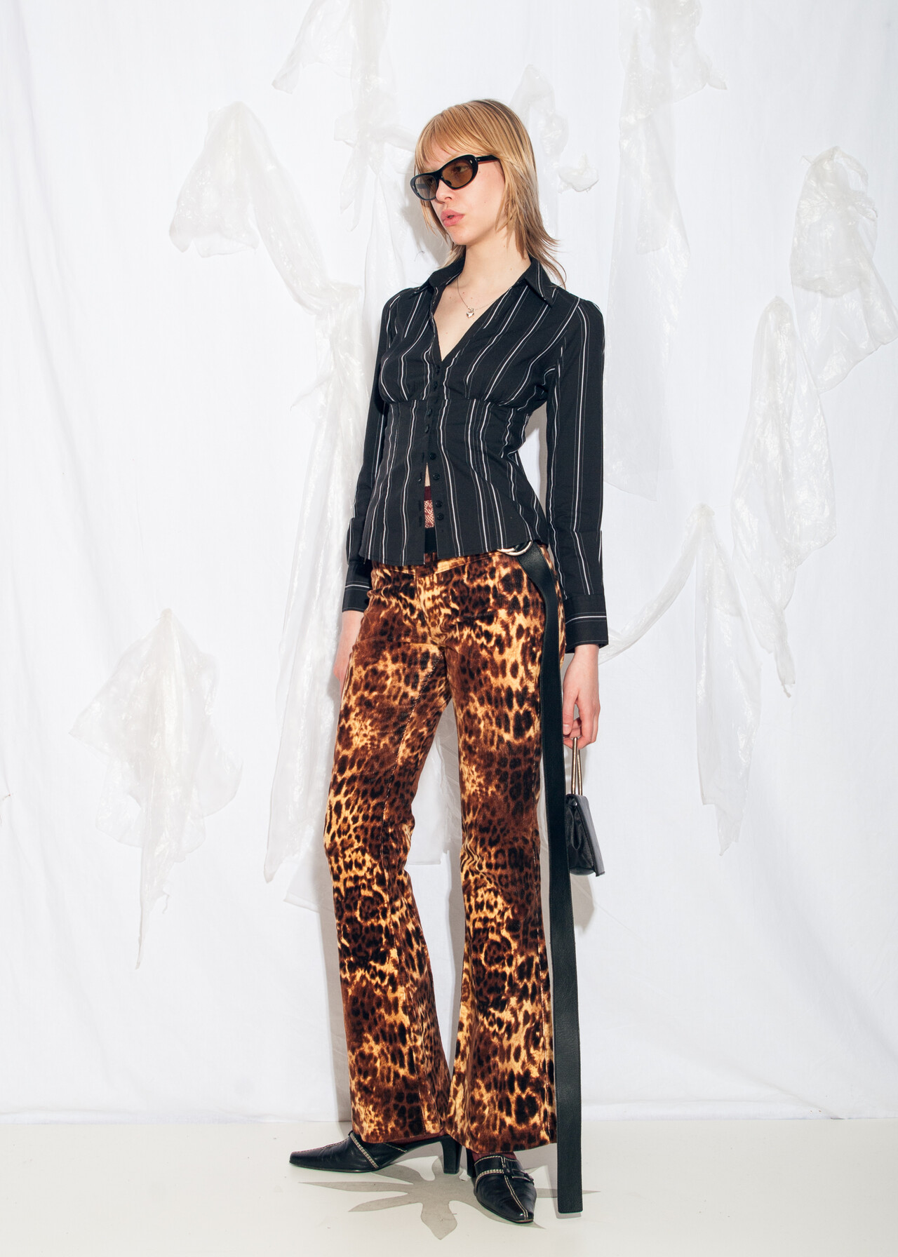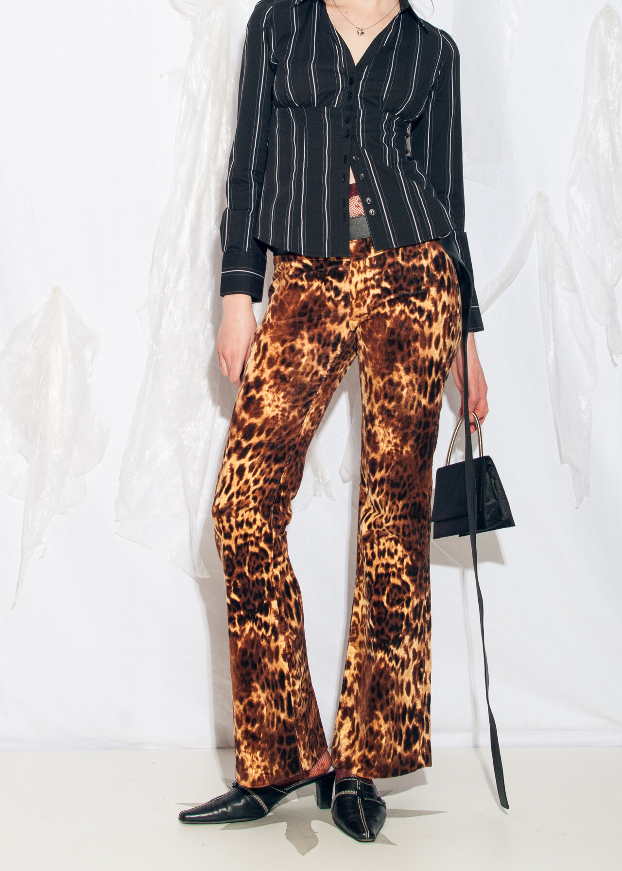 Tags: 2000s style fashion, animal pattern, bootcut jeans, European vintage, festival outfit, flare trousers, leopard print, low rise flares, low waisted pants, velvet trousers, y2k vintage clothing