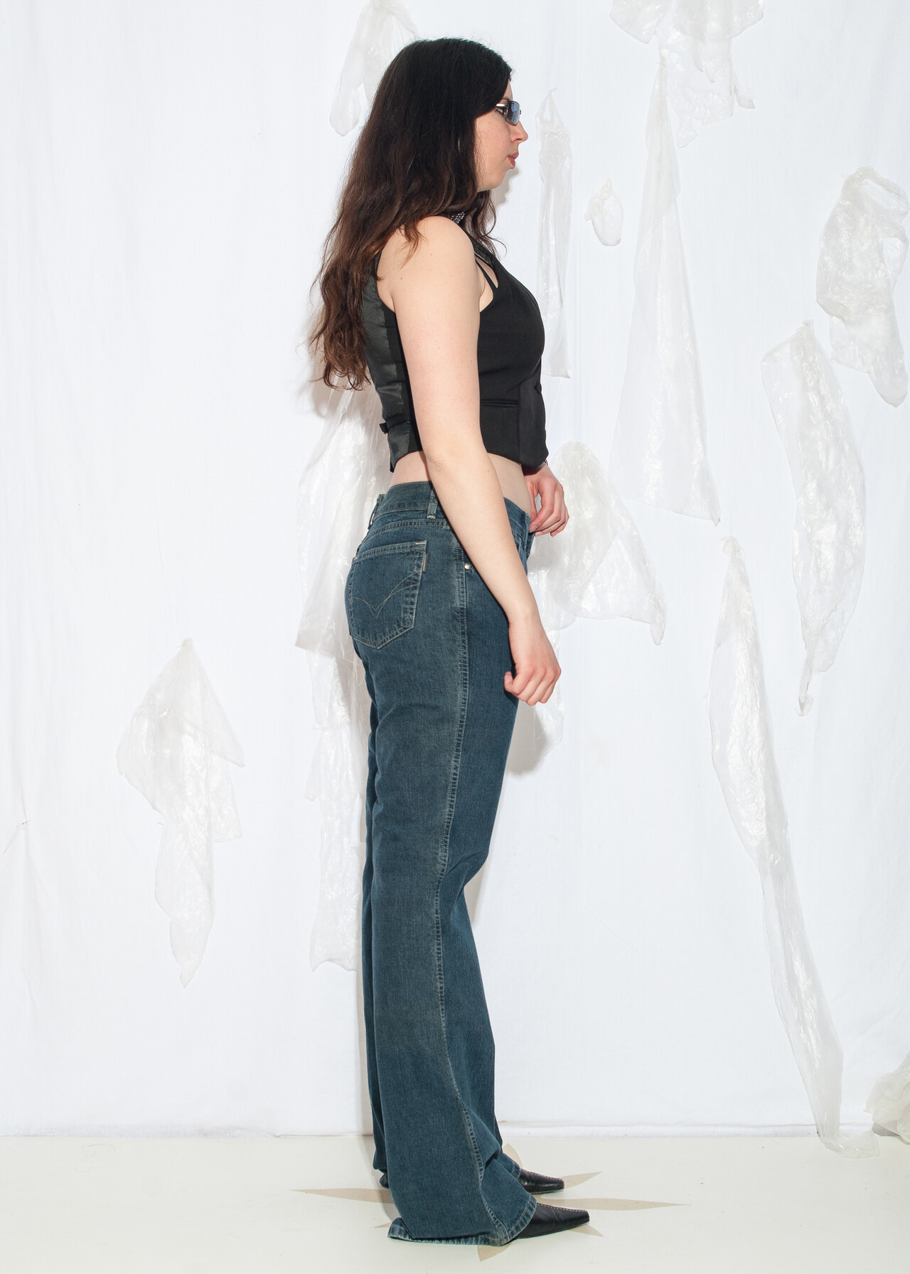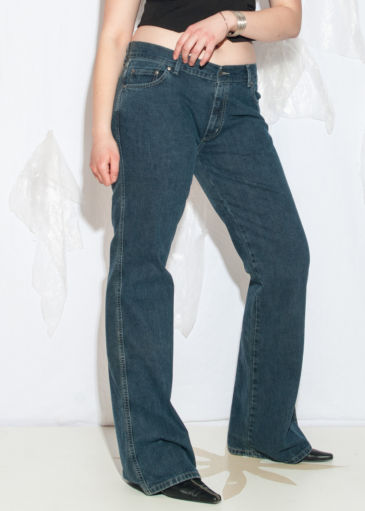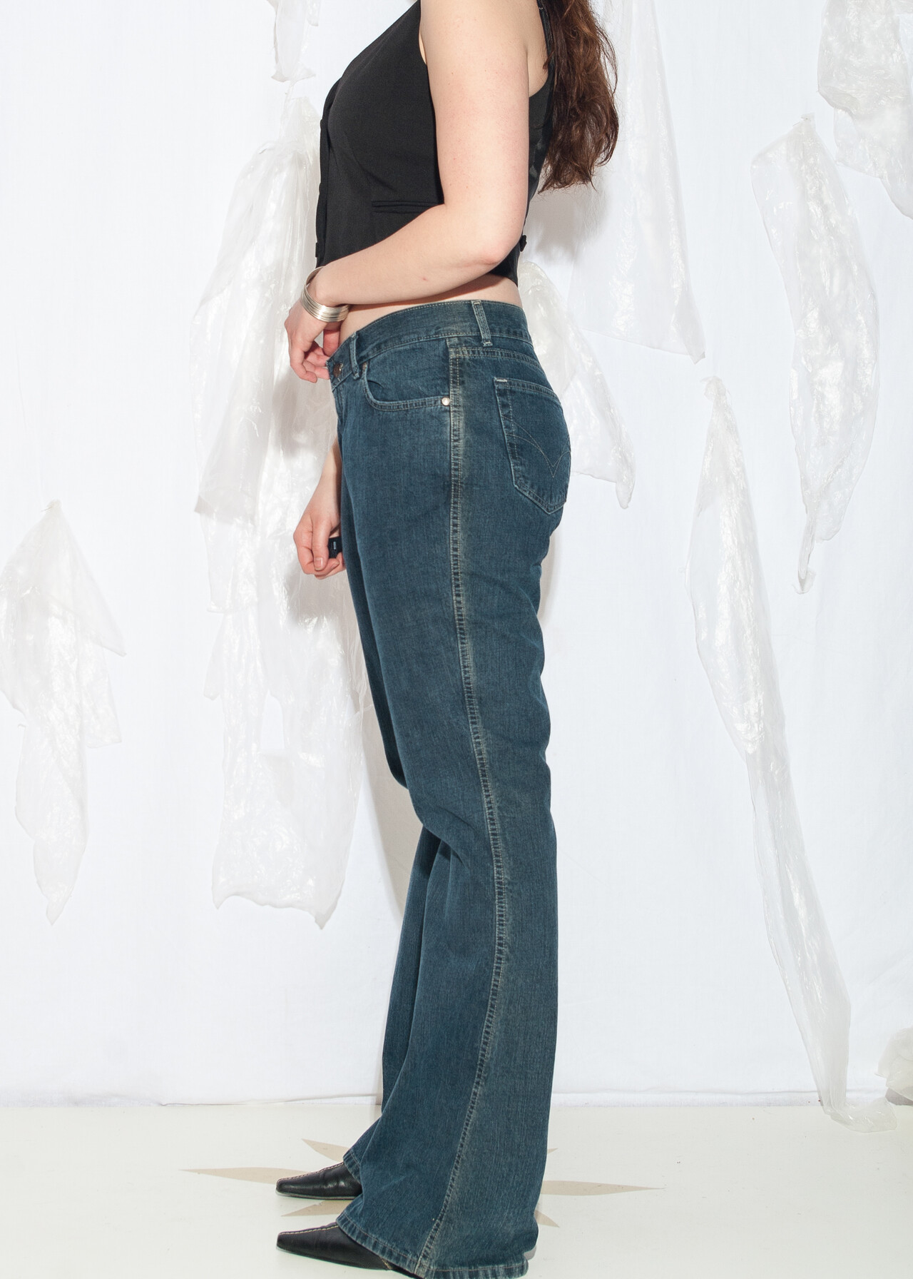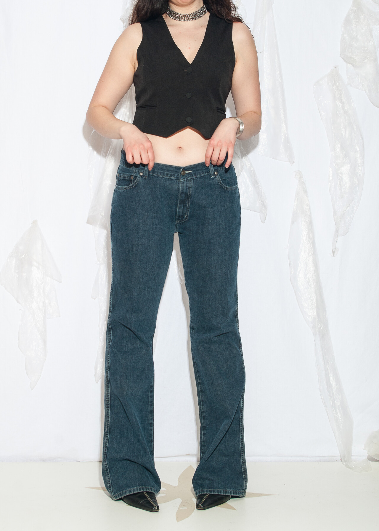 Vintage Y2K Middle Rise Flare Jeans in Dark Blue