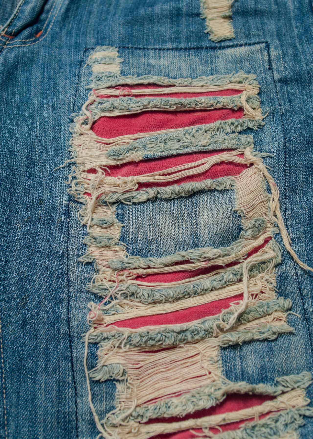 Vintage Y2K Shredded Flare Jeans in Red and Blue