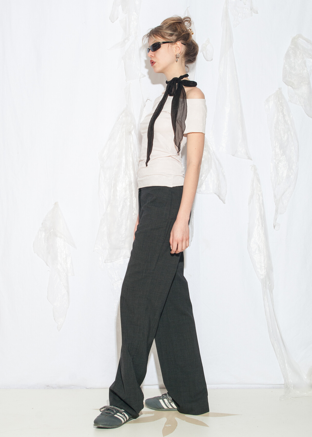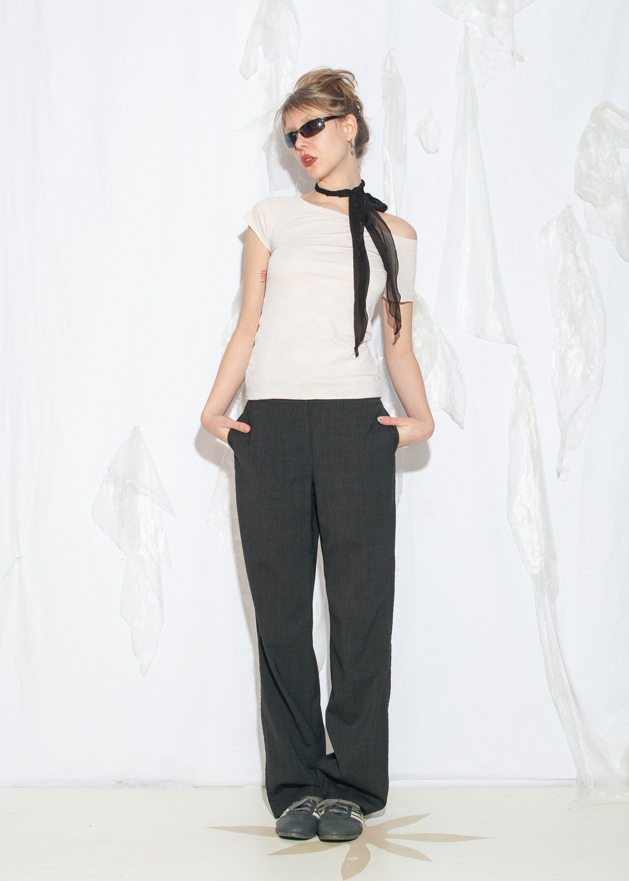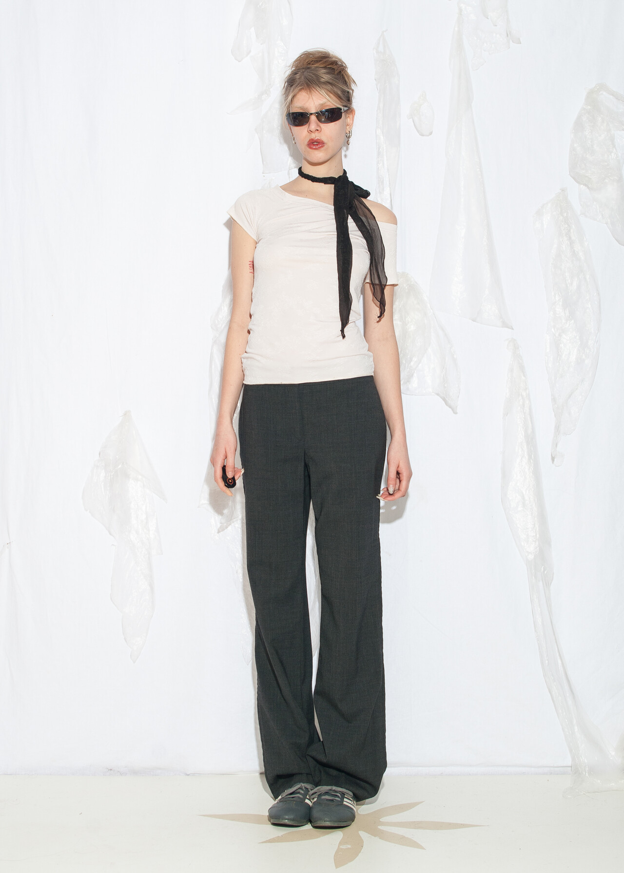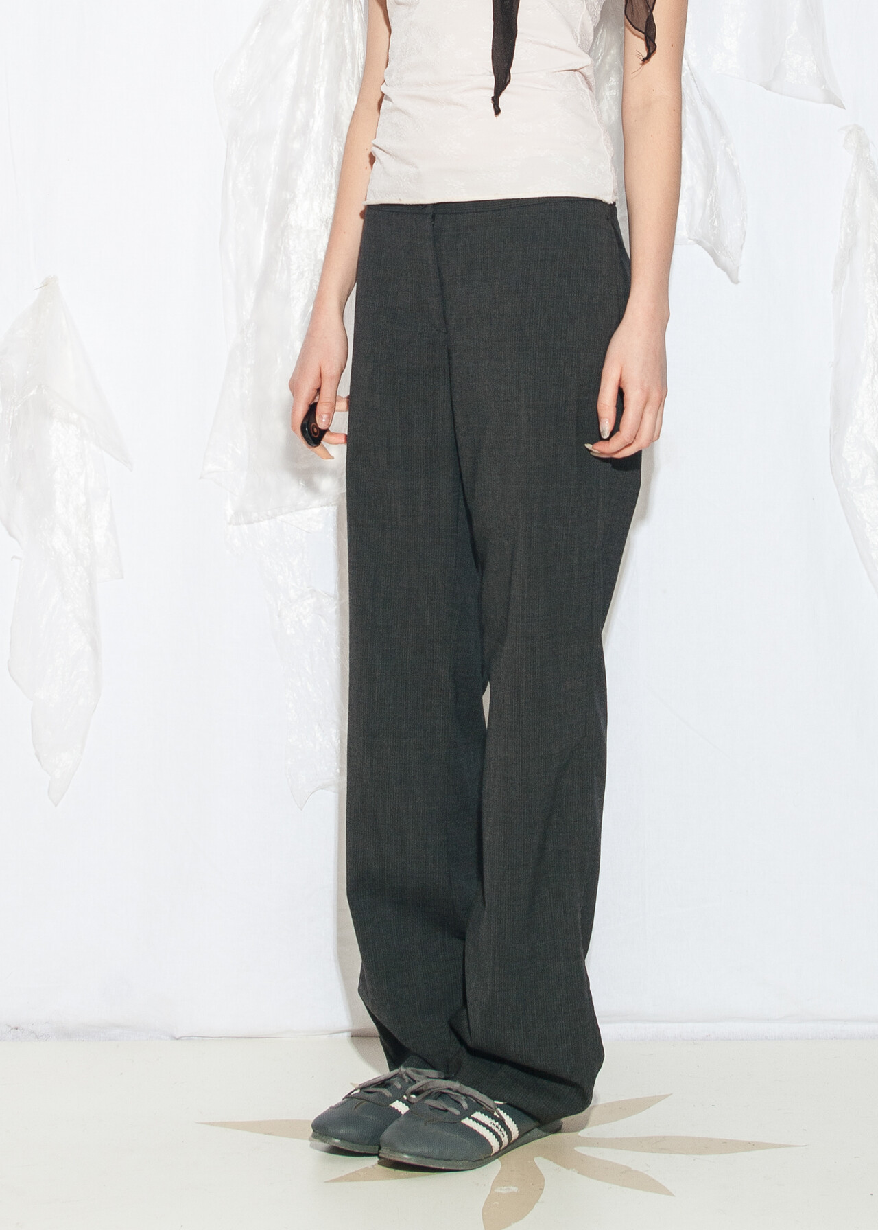 Tags: 2000s style fashion, bootcut trousers, flare pants, grunge outfit, middle rise waist, office siren, officecore aesthetic, wool blend, y2k vintage clothing