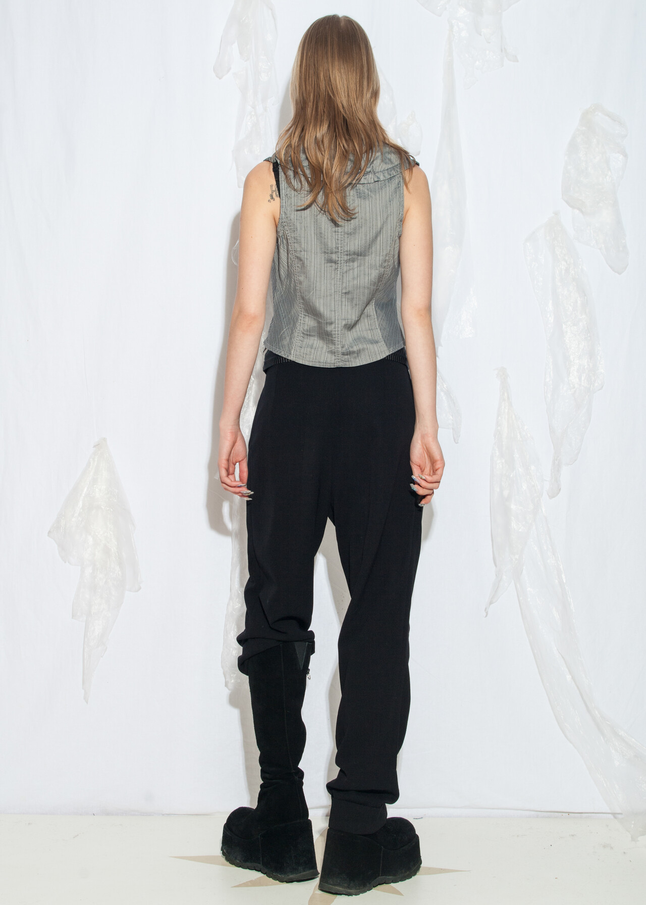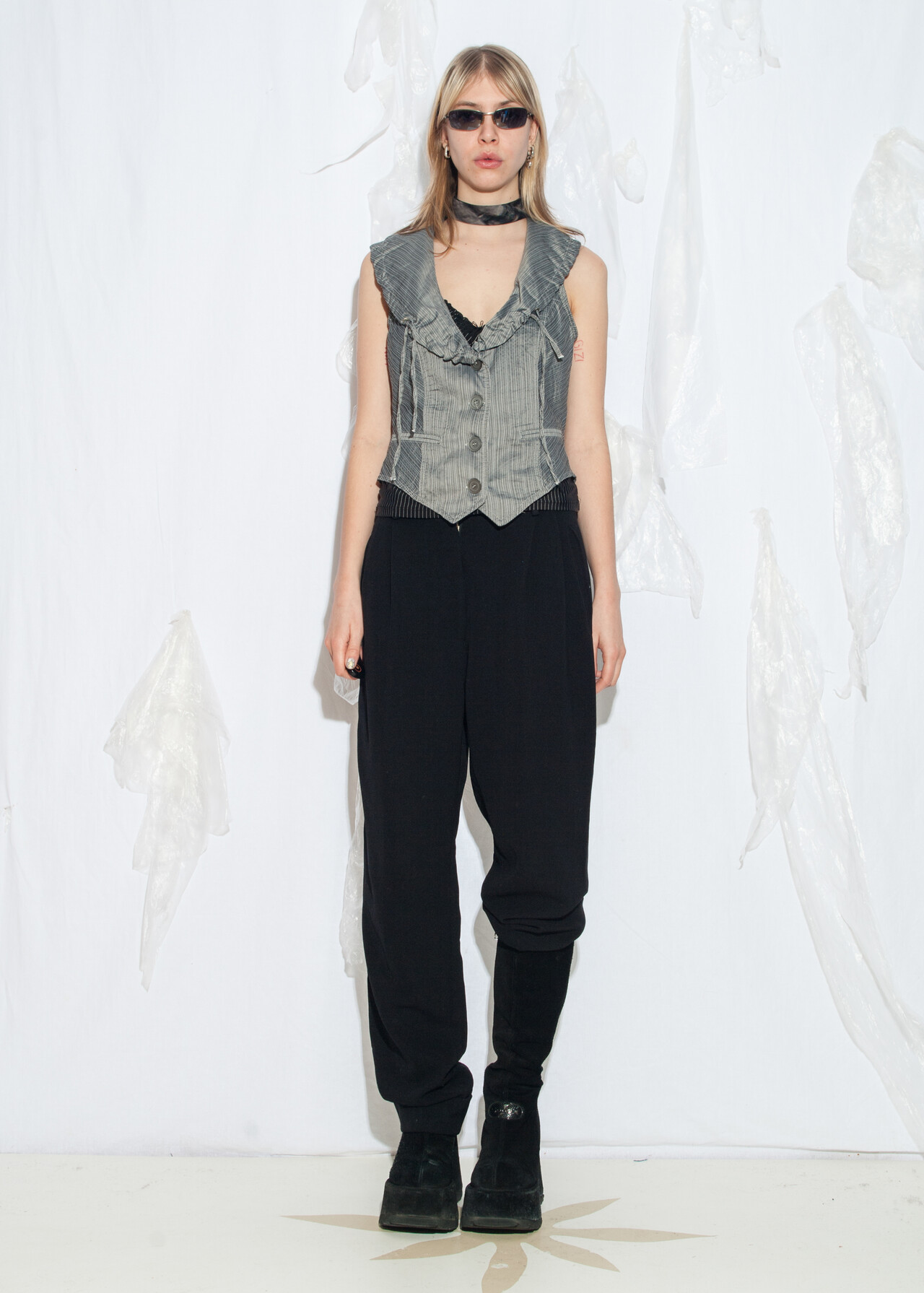 Tags: 2000s style fashion, office siren, officecore, silver vest, slim fit waistcoat, tailored top, y2k grunge outfit, y2k vintage clothing