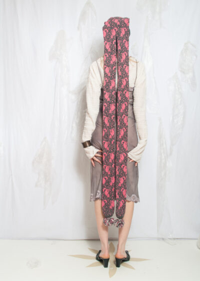 Vintage Y2K Knitted Jester Hat in Pink and Grey with Scarf