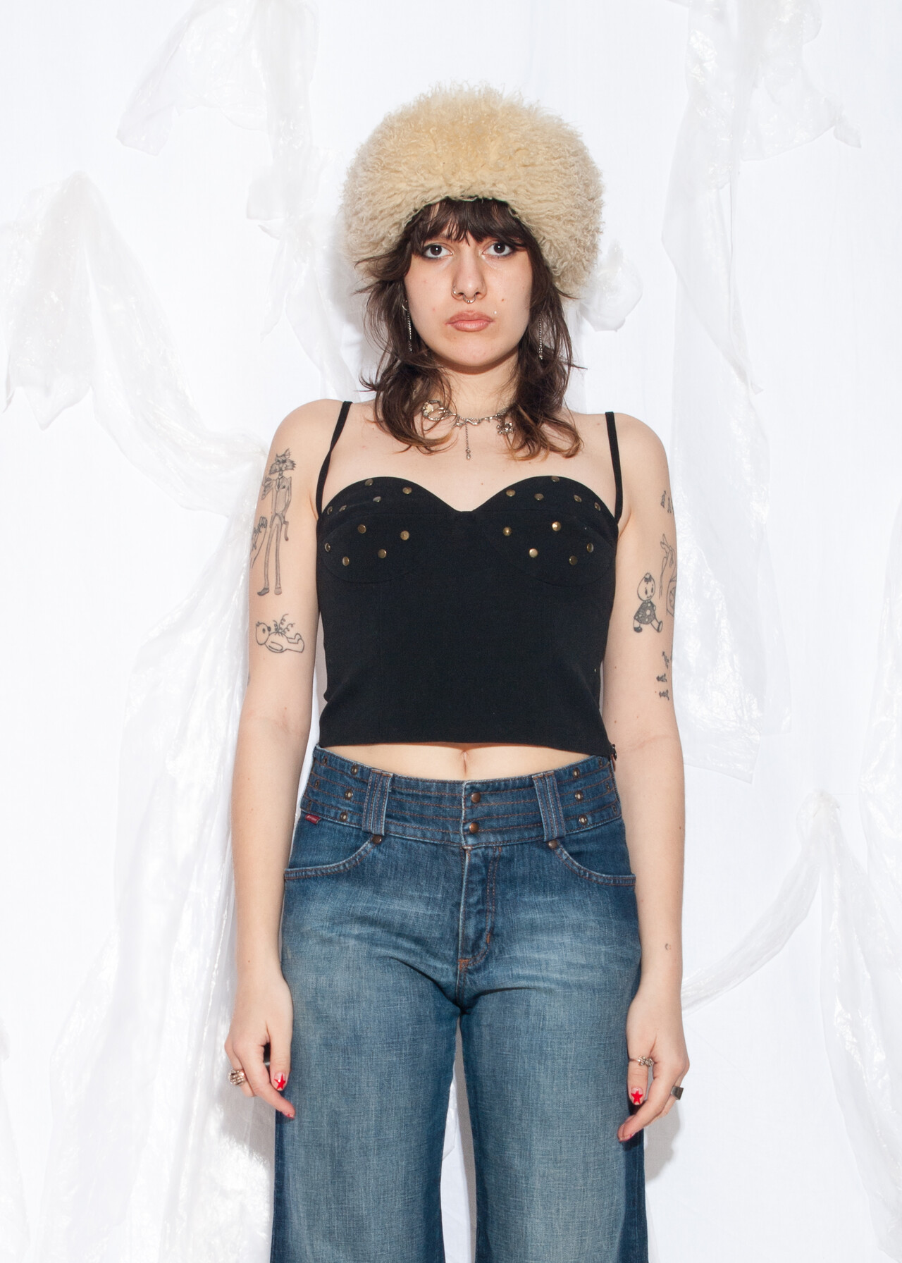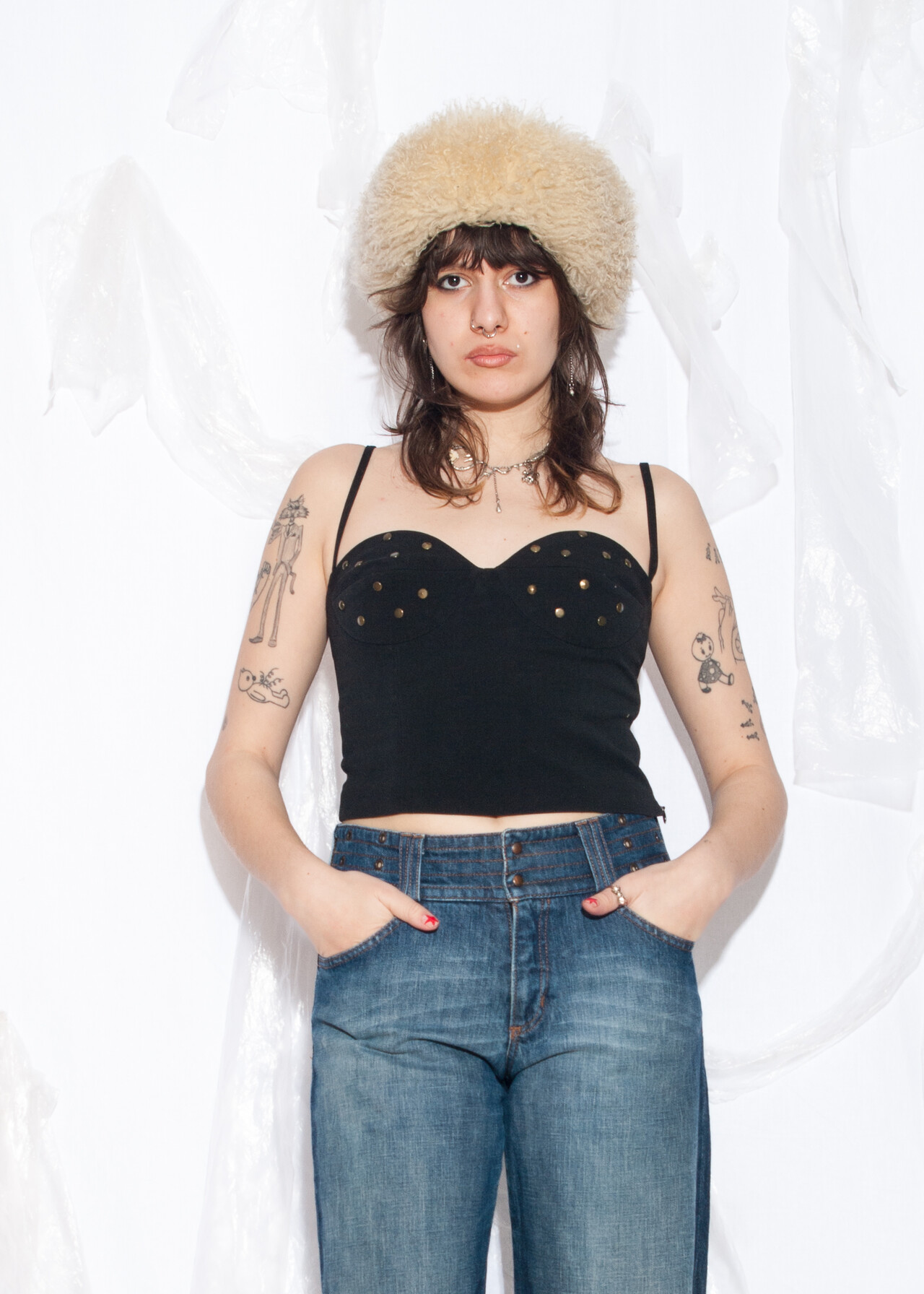 Tags: 90s vintage style, corset bustier, grunge, studded top