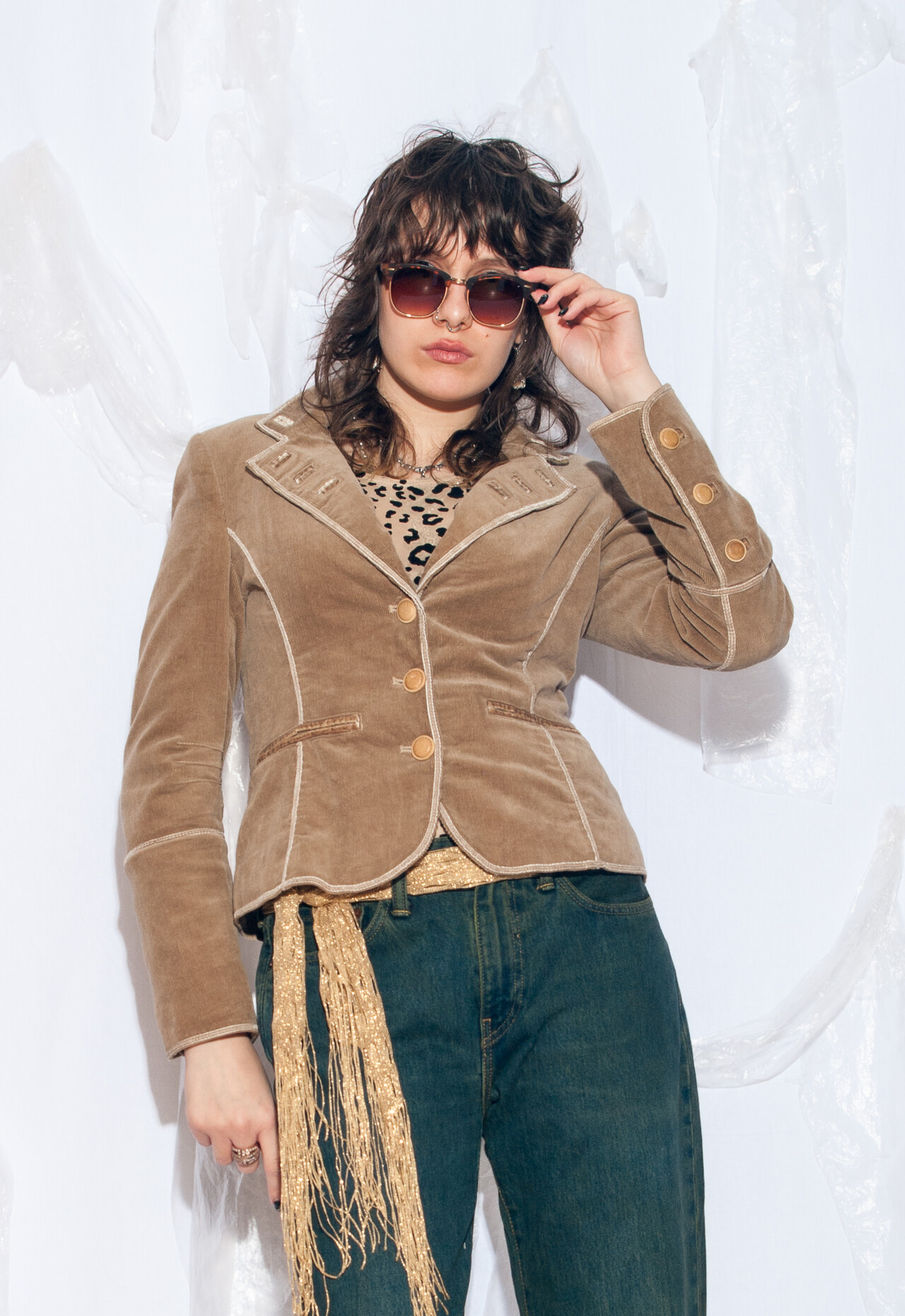 Tags: 2000s vintage style, corduroy blazer, fitted jacket, whimsi twee