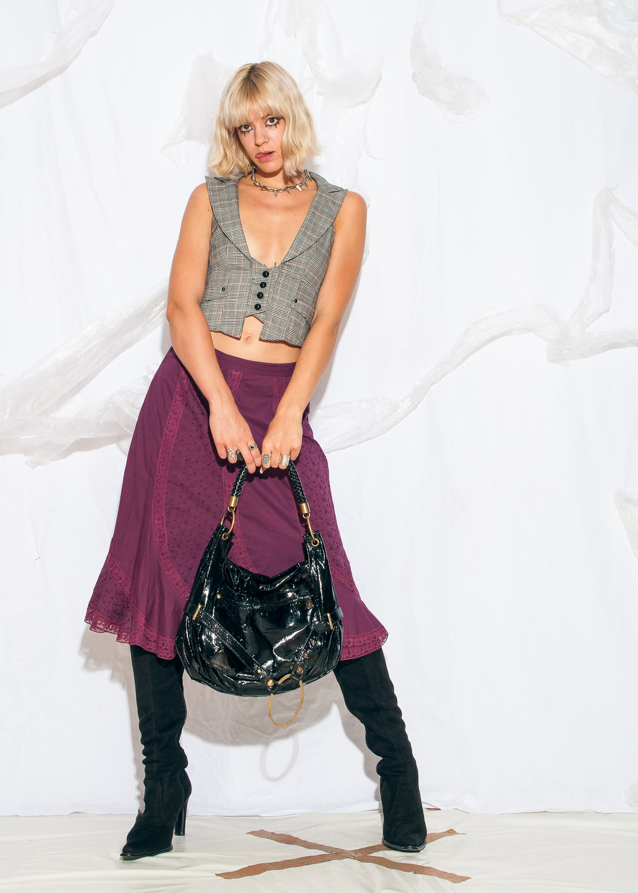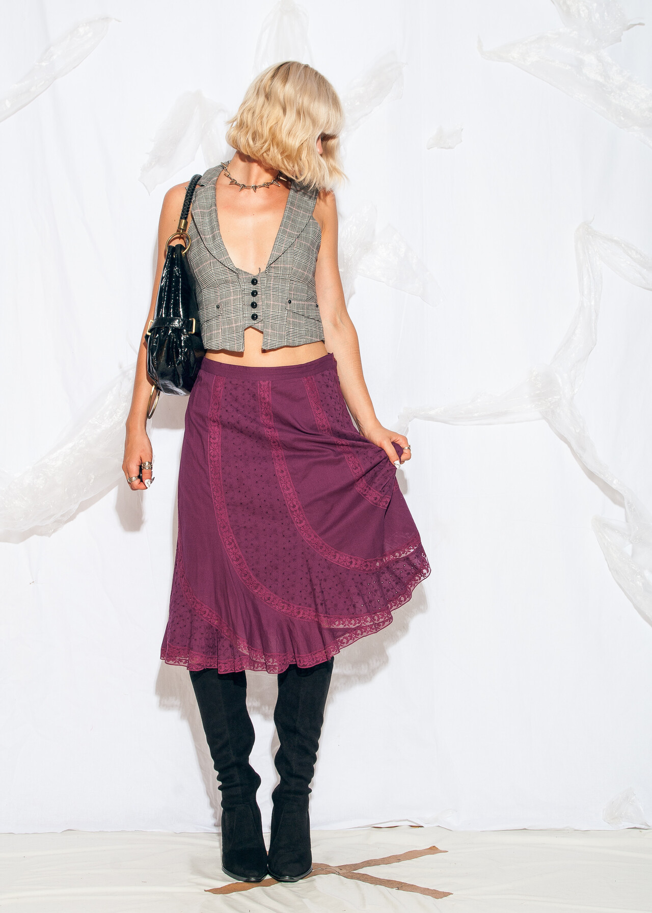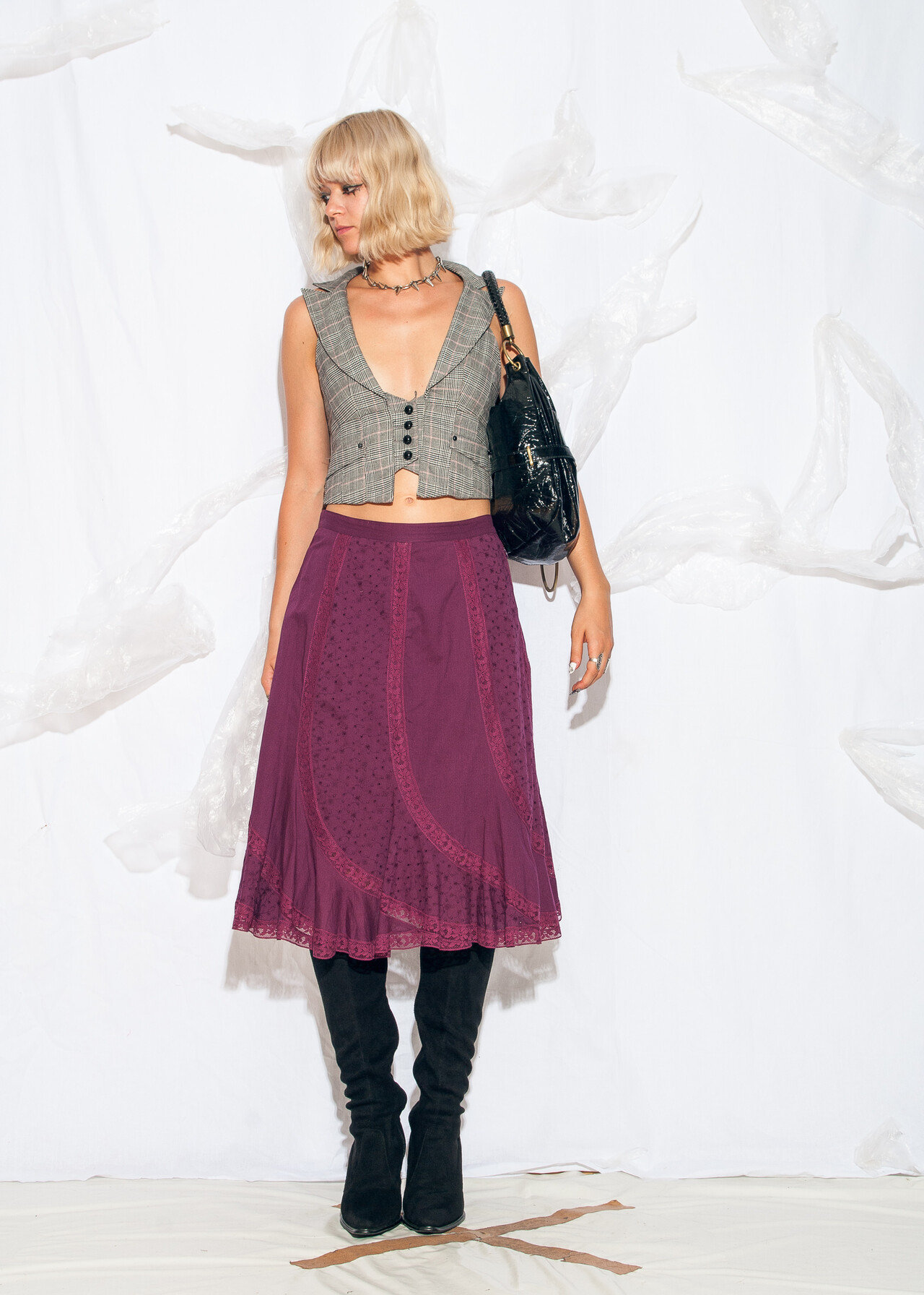 Be the first to review “Vintage Y2K Office Siren Corset Vest in Grey Plaid” Cancel reply