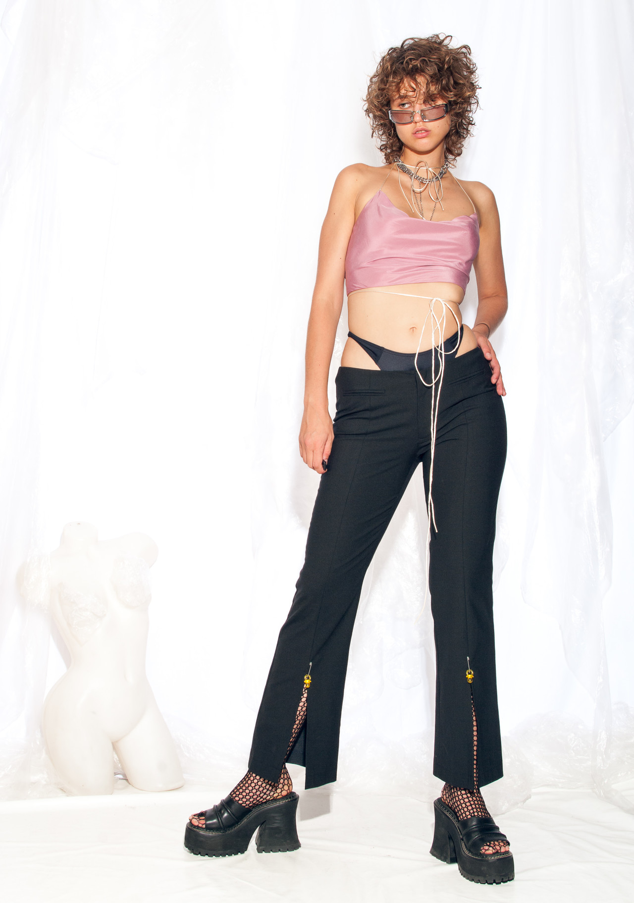 These Y2K vintage trousers are the fashion equivalent of finding a dusty old mix CD in your car. They scream early 2000s with their wool blend fabric and fun surprise: plastic baby pacifiers in the slits.