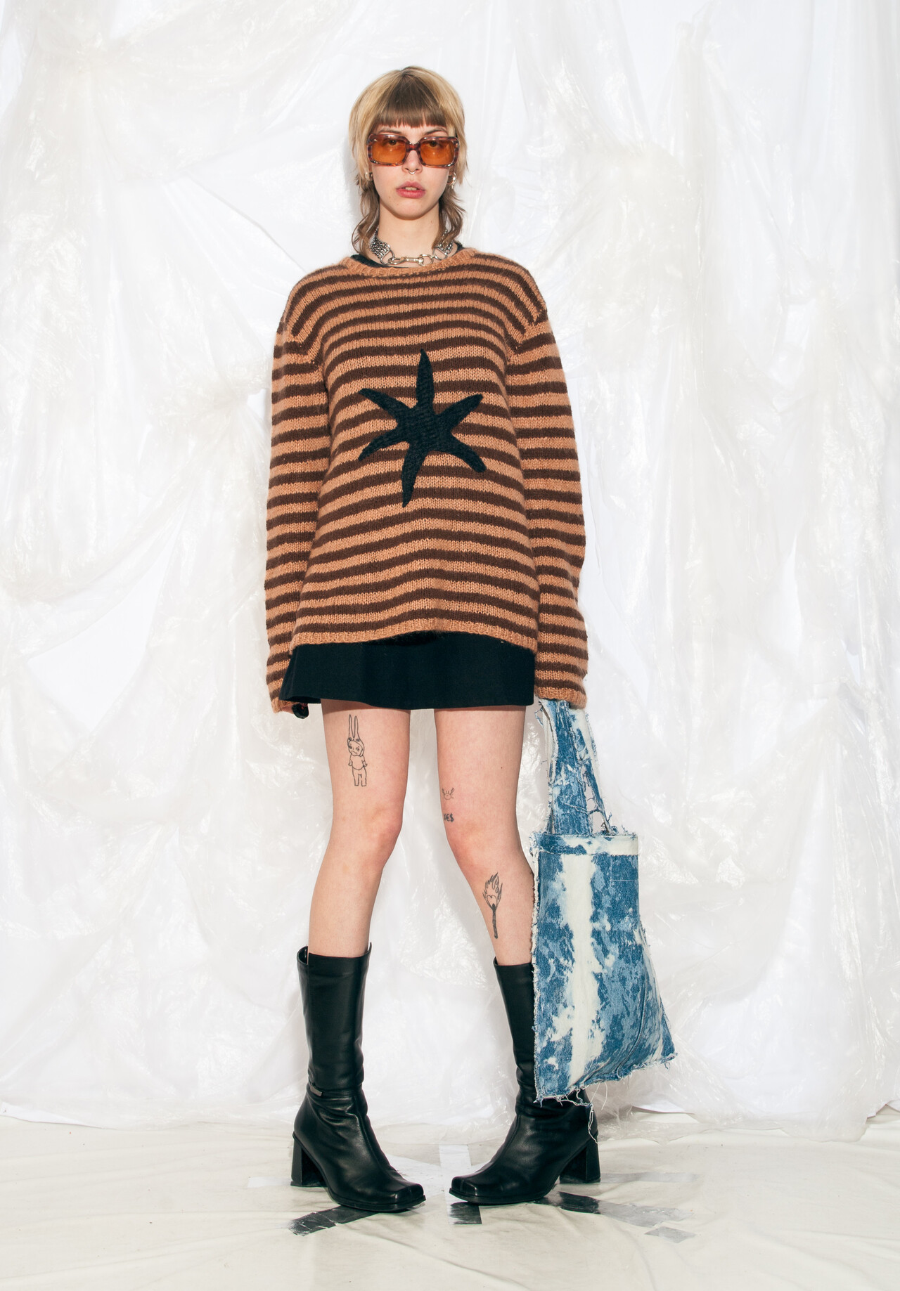 This reworked patchwork tote bag is the denim equivalent of a Frankenstein creation – Frankenstein chic, if you will. With its funky showstopper design, it’s the perfect accessory to summon some Y2K vibes.,