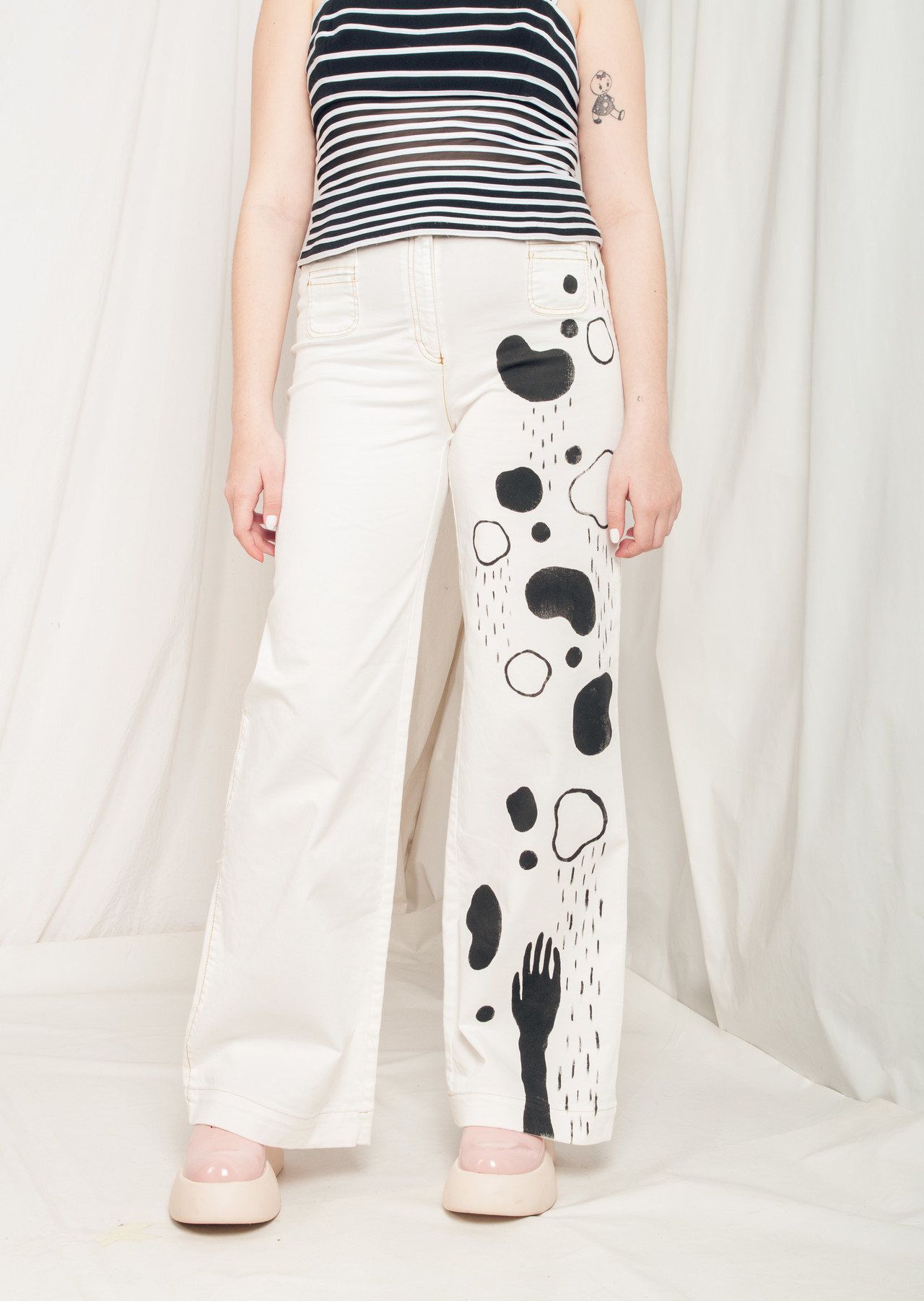 Reworked Jeans Y2K Vintage Hand-painted White Flares