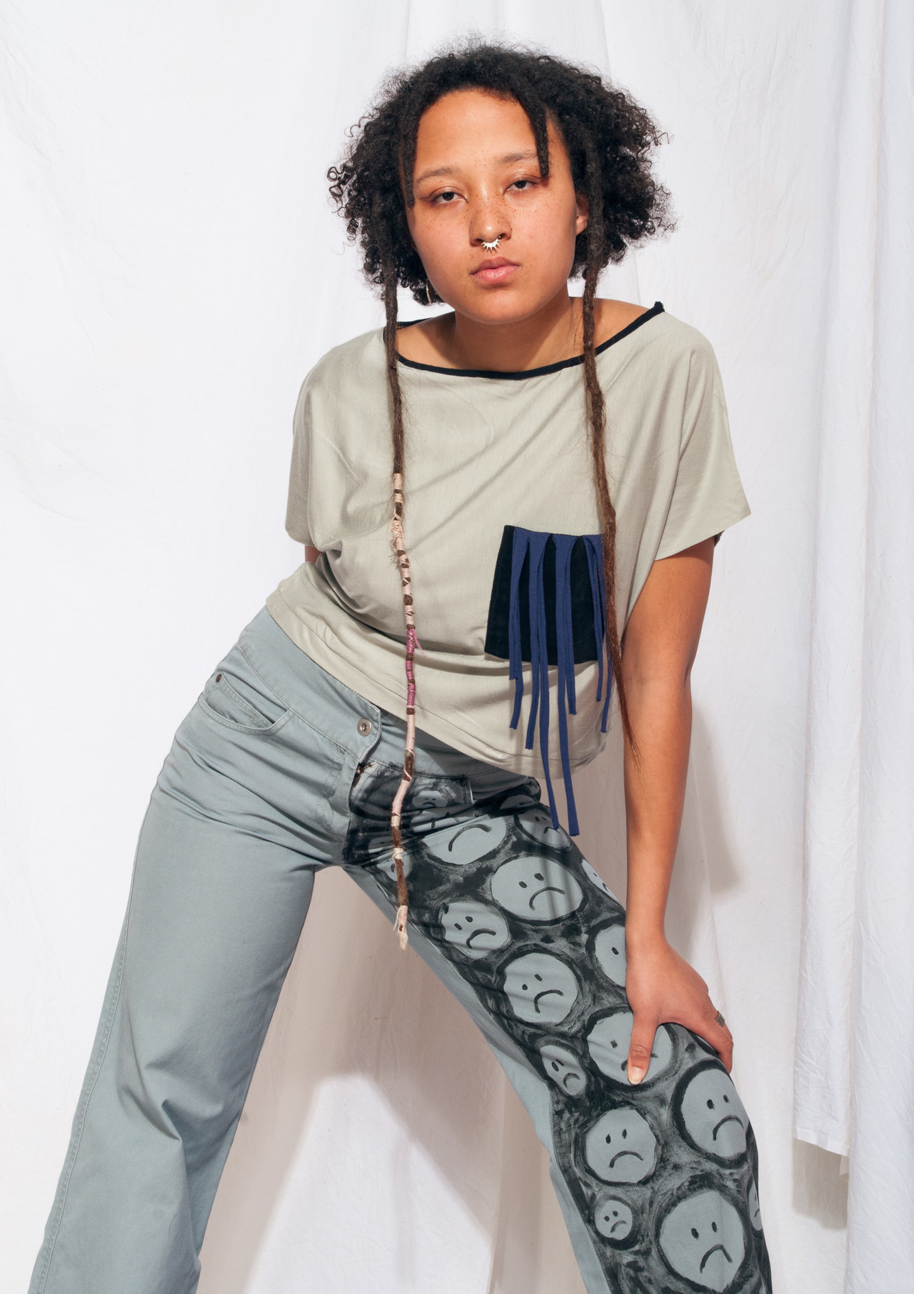 Be the first to review “Reworked Top Y2K Remnant Vintage Fabric Weird Tee” Cancel reply