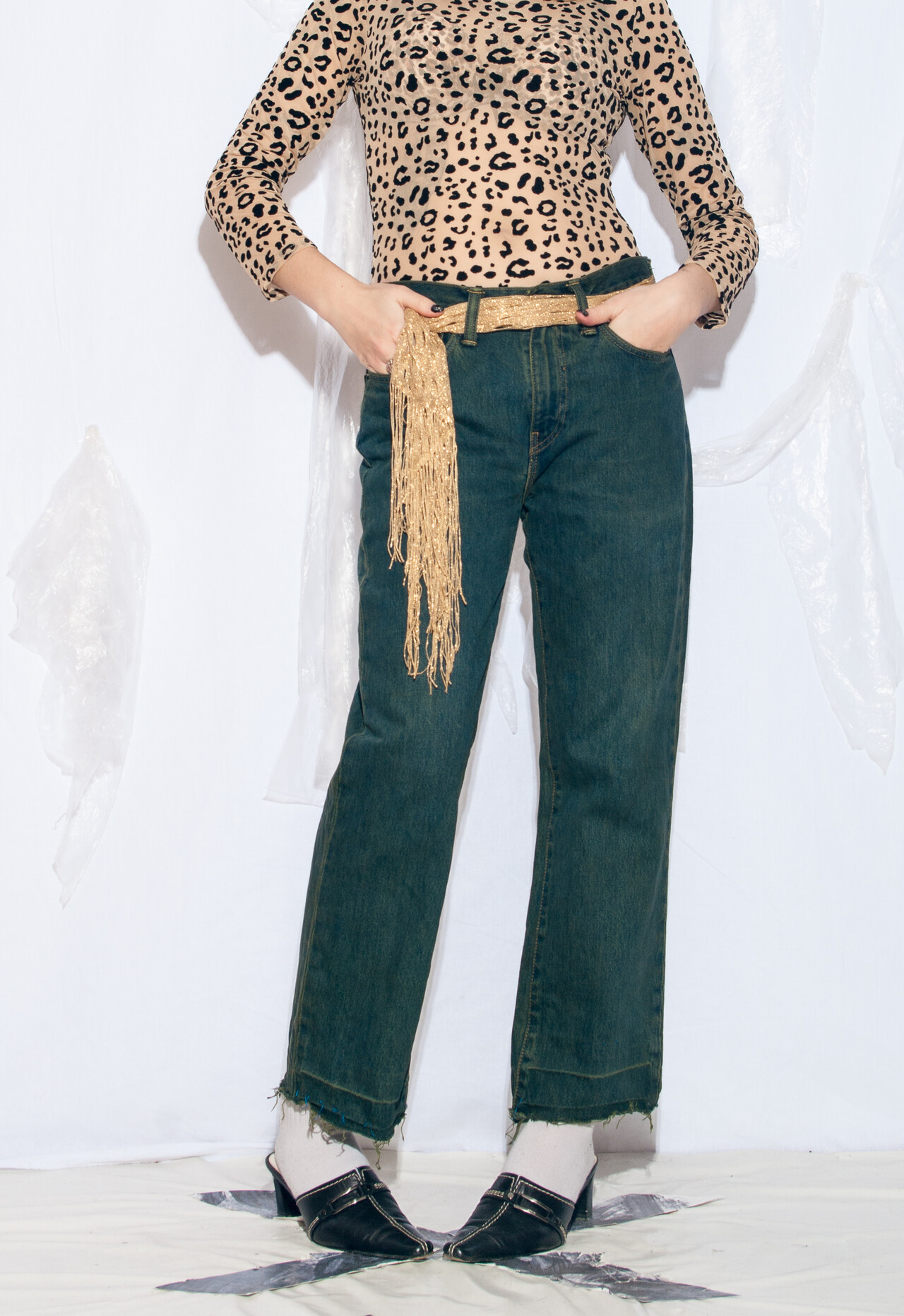 Be the first to review “Reworked Vintage 90s Levi’s Flare Jeans in Mud Wash Green” Cancel reply