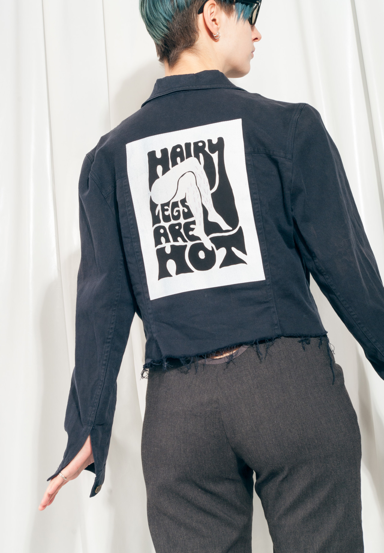 Pop Sick reworked vintage denim jacket straight from the 80s that we cropped to perfection. Then we added one of our hand-embroidered Hairy Legs Are Hot patches. It’s our own graphic and we screen printed it at our small home studio. This jacket is a real vintage babe that’s still in great condition. It features bronze buttons and two pockets.