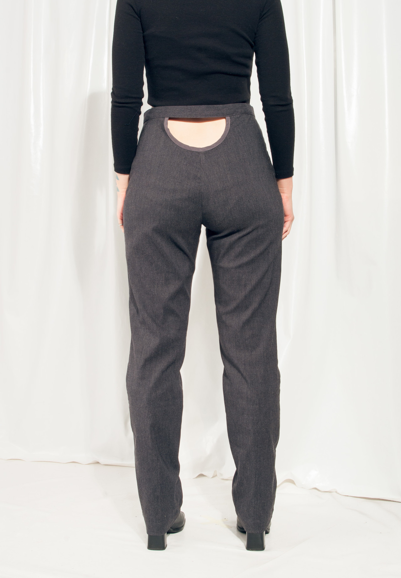 Reworked Vintage Trousers 90s Cut Out High Waist Pants