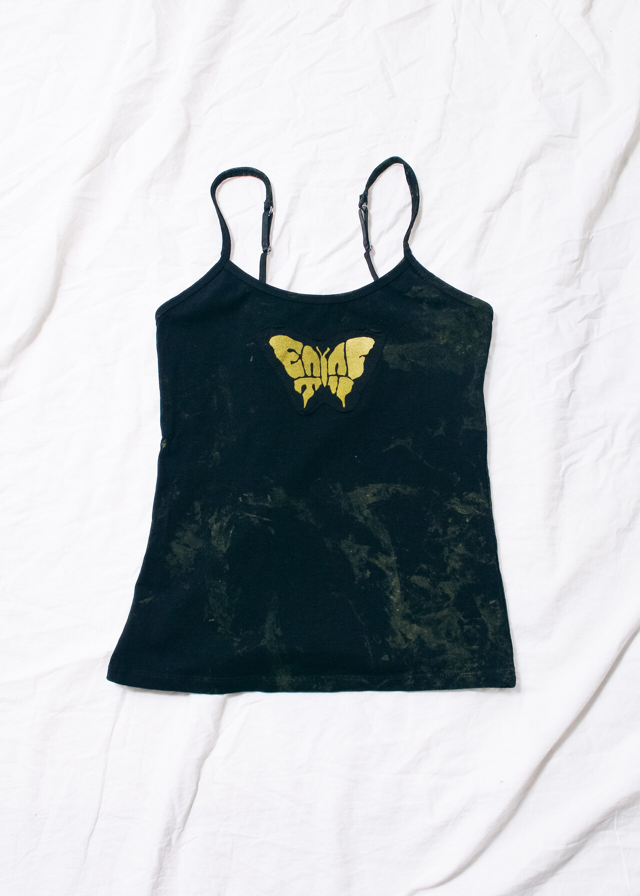 Tags: 2000s style clothing, butterfly patch, cami top, cotton camisole, Eat Acid, reworked, y2k vintage fashion
