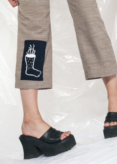 Vintage cropped trousers Reworked art patch wide-leg pants