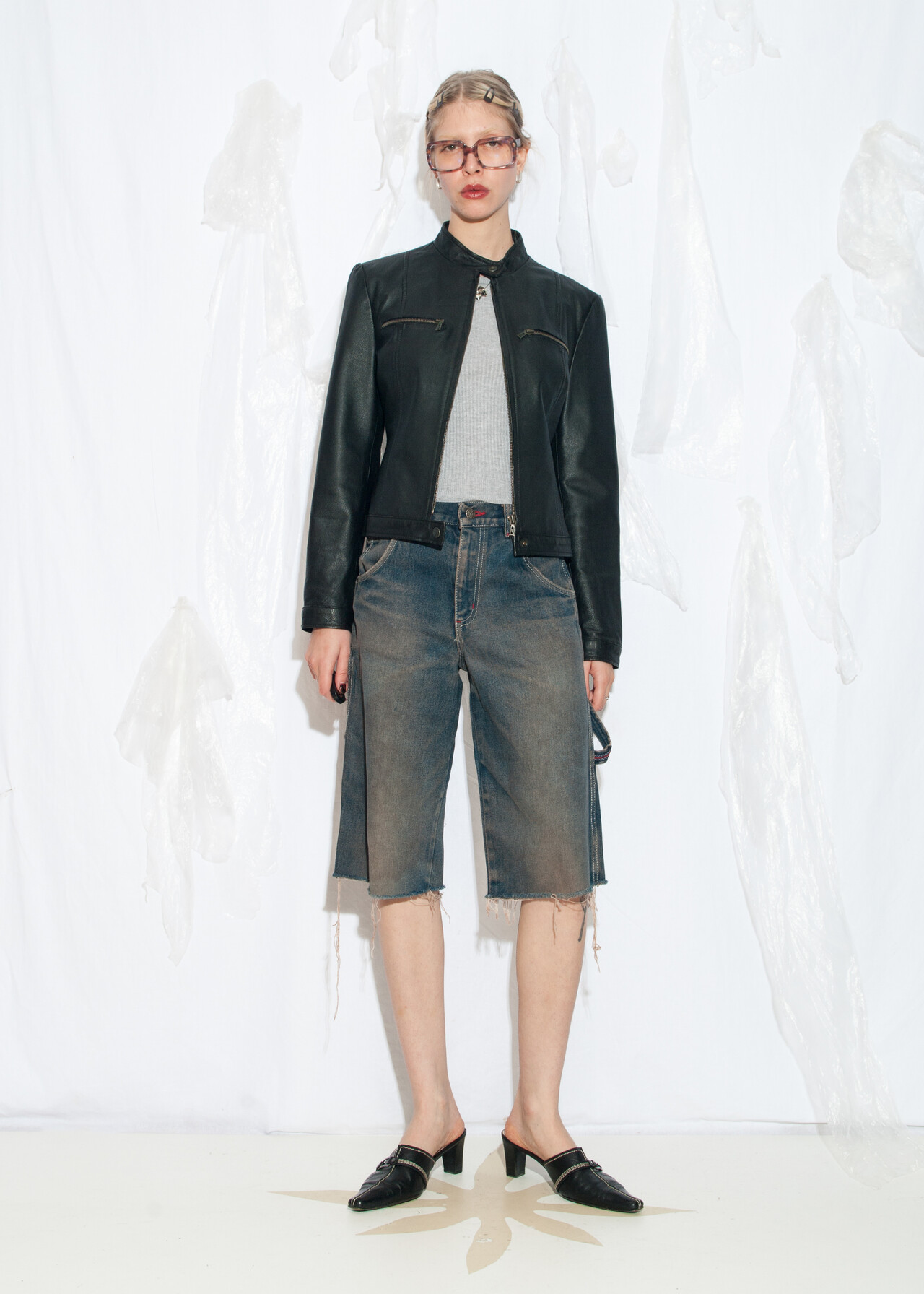 Tags: 2000s style clothing, boyfriend fit, denim shorts, gender neutral, hip hop pants, mud wash dyed, raw hem denim, reworked, ucycled jeans, wide leg trousers, y2k vintage fashion