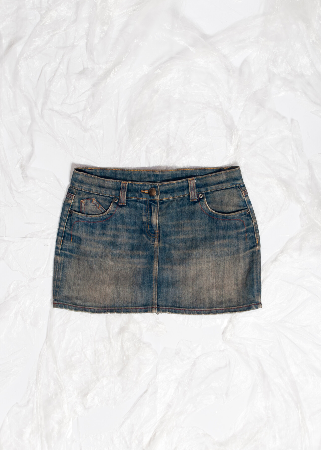 Tags: 2000s vintage style, denim micro skirt, grunge, mud wash, overdyed, reworked