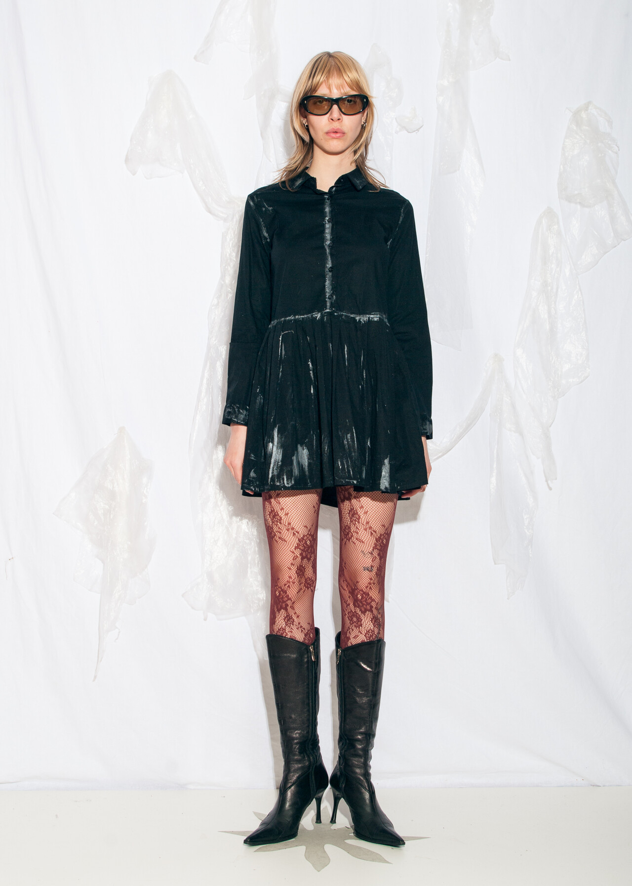 Tags: hand-painted, long sleeve dress, reworked, whimsical mini dress, whimsigoth, y2k shirt dress