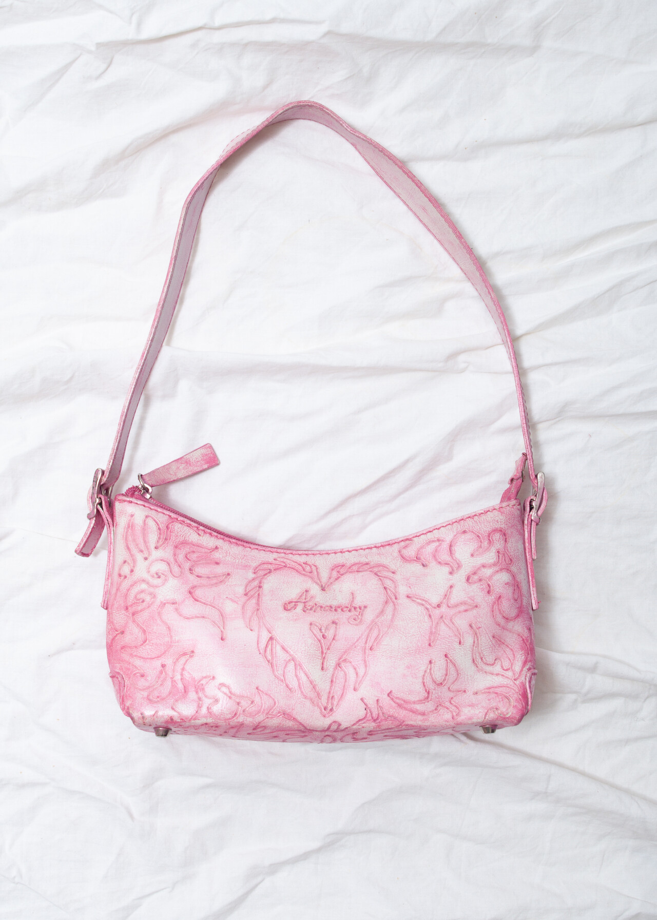 This Y2K vintage bag is your ticket to early 2000s anarchy with its hand-painted chaos in a pink leather wonderland.