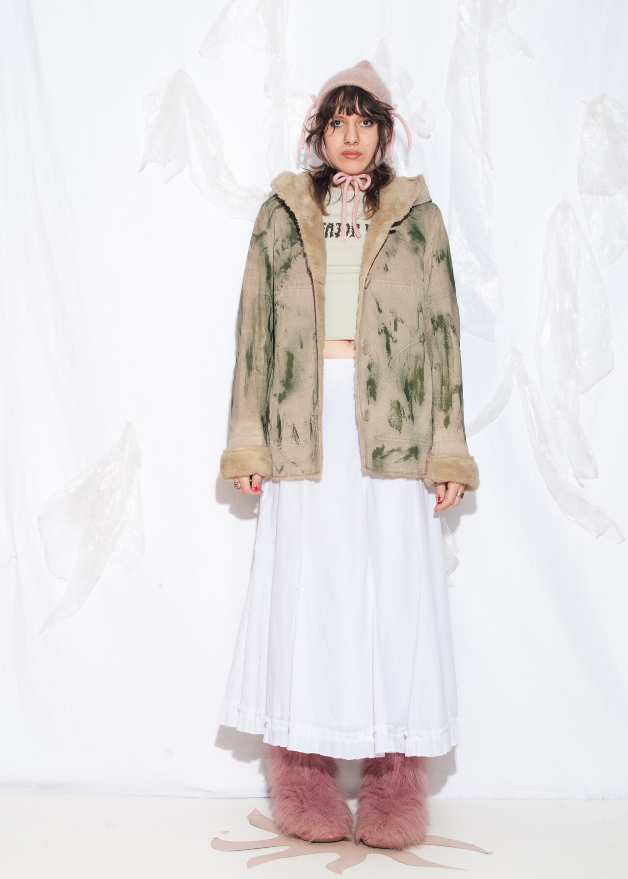 Tags: faux shearling, goblincore, hand-painted, leather coat, real suede leather, reworked, whimsigoth