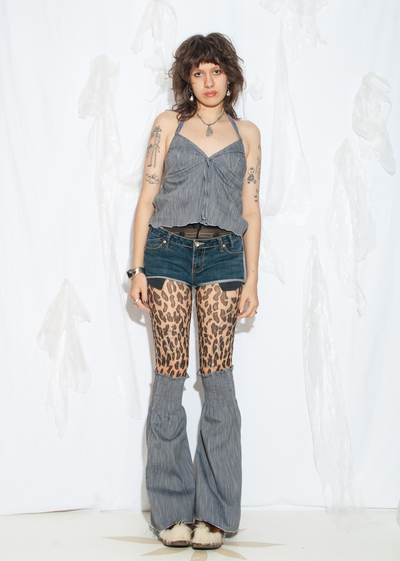 This Y2K vintage upcycled top and leg warmer set is your ticket to cyber grunge glory, with a side of “did I just time travel to a 2000s punk concert?” vibes.