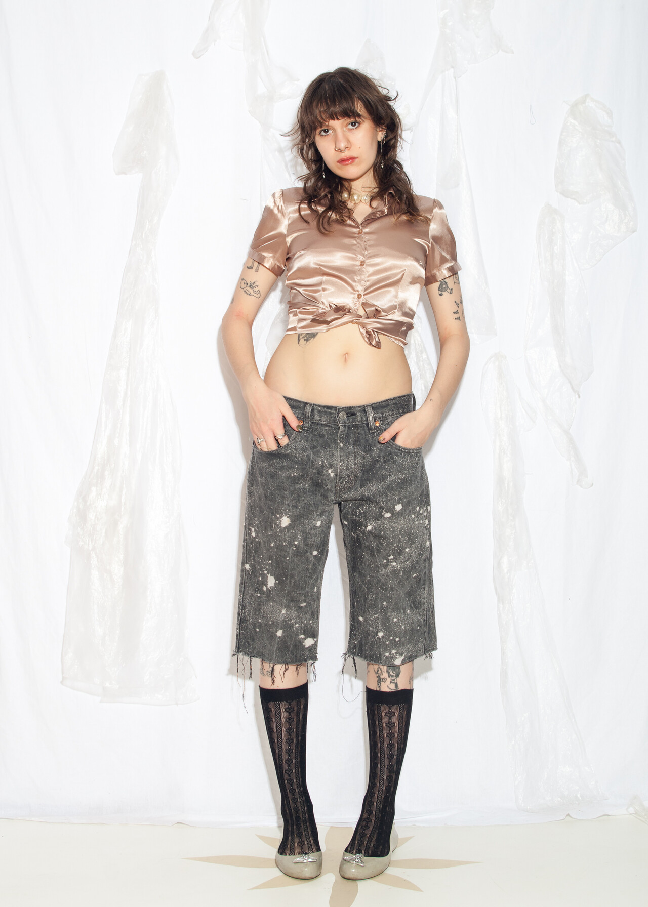 Tags: 2000s style clothing, denim jorts, Levi's, reworked jeans, upcycled pants, y2k grunge, y2k vintage fashion