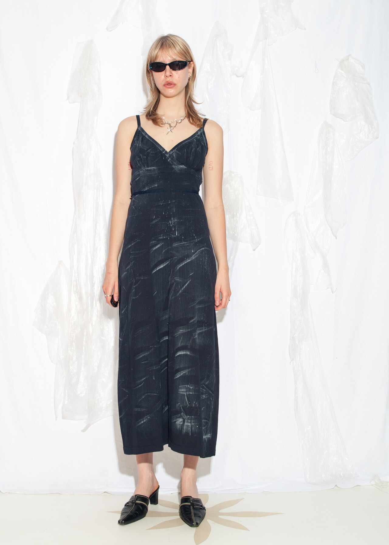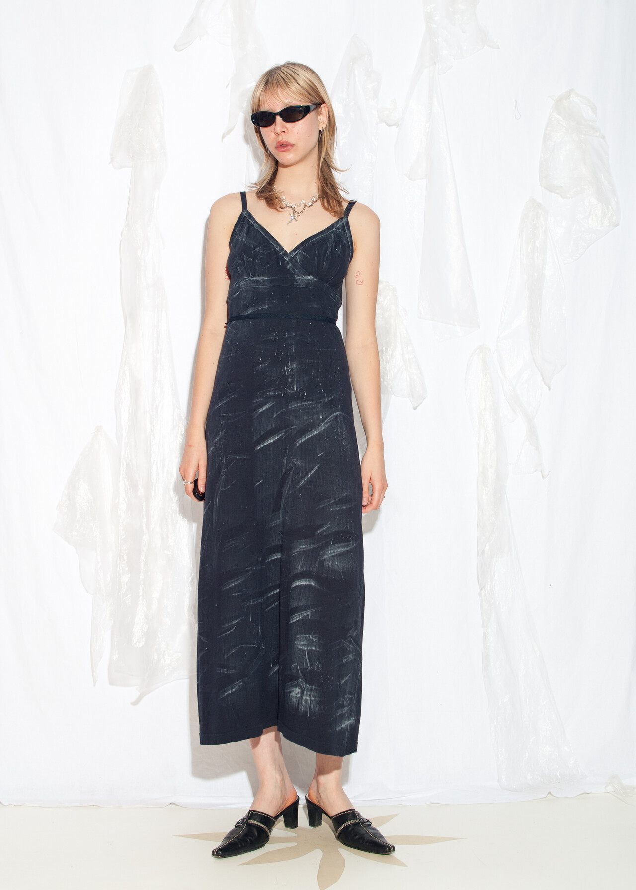 This Y2K vintage dress is like wearing a canvas of early 2000s nostalgia, complete with hand-painted magic that screams “I survived dial-up internet!”
