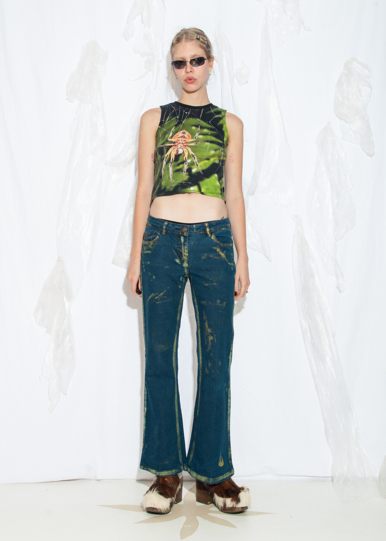 These reworked Y2K vintage jeans are the low-rise, hand-painted wonders that will have you strutting like it’s 2003 all over again.