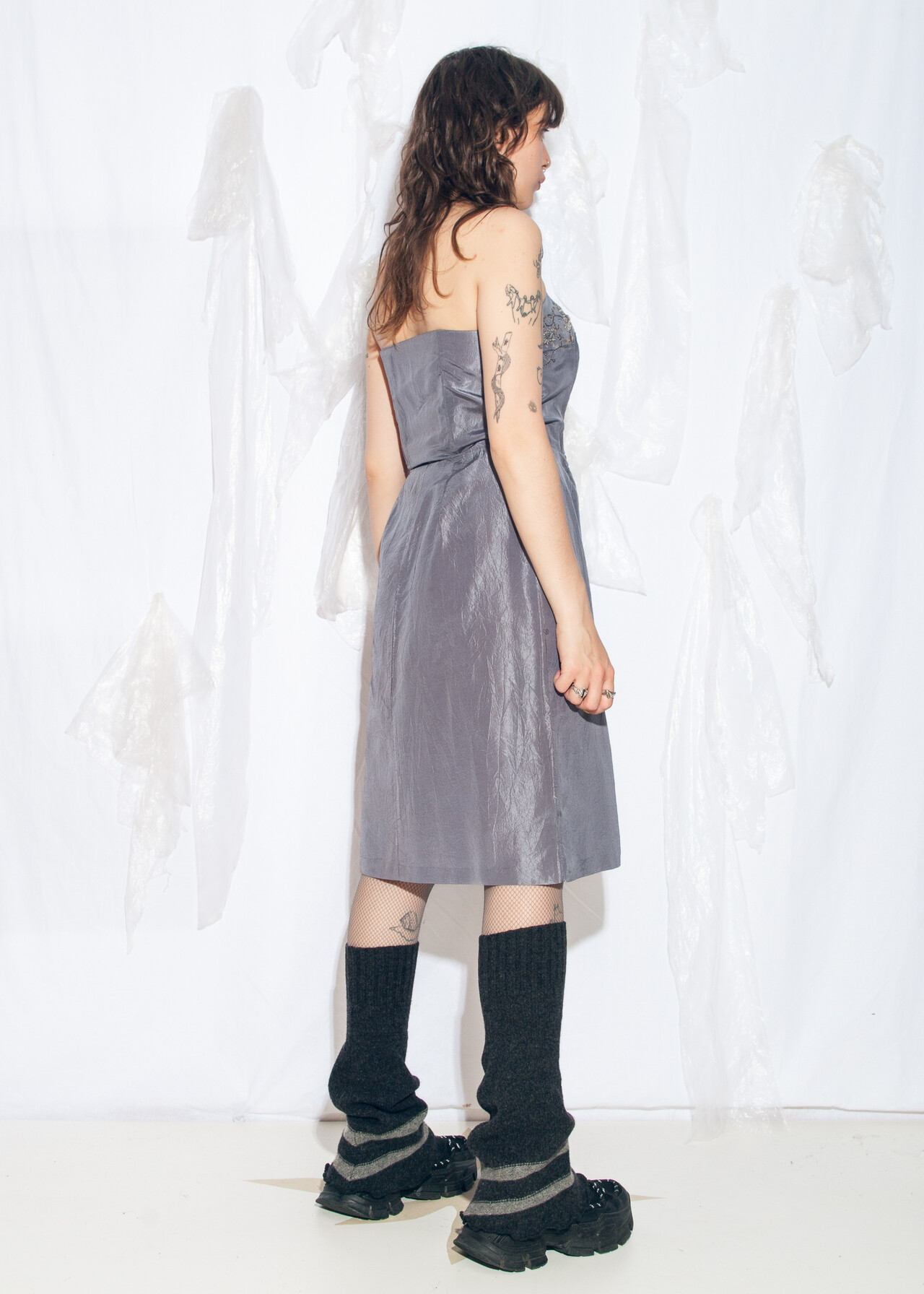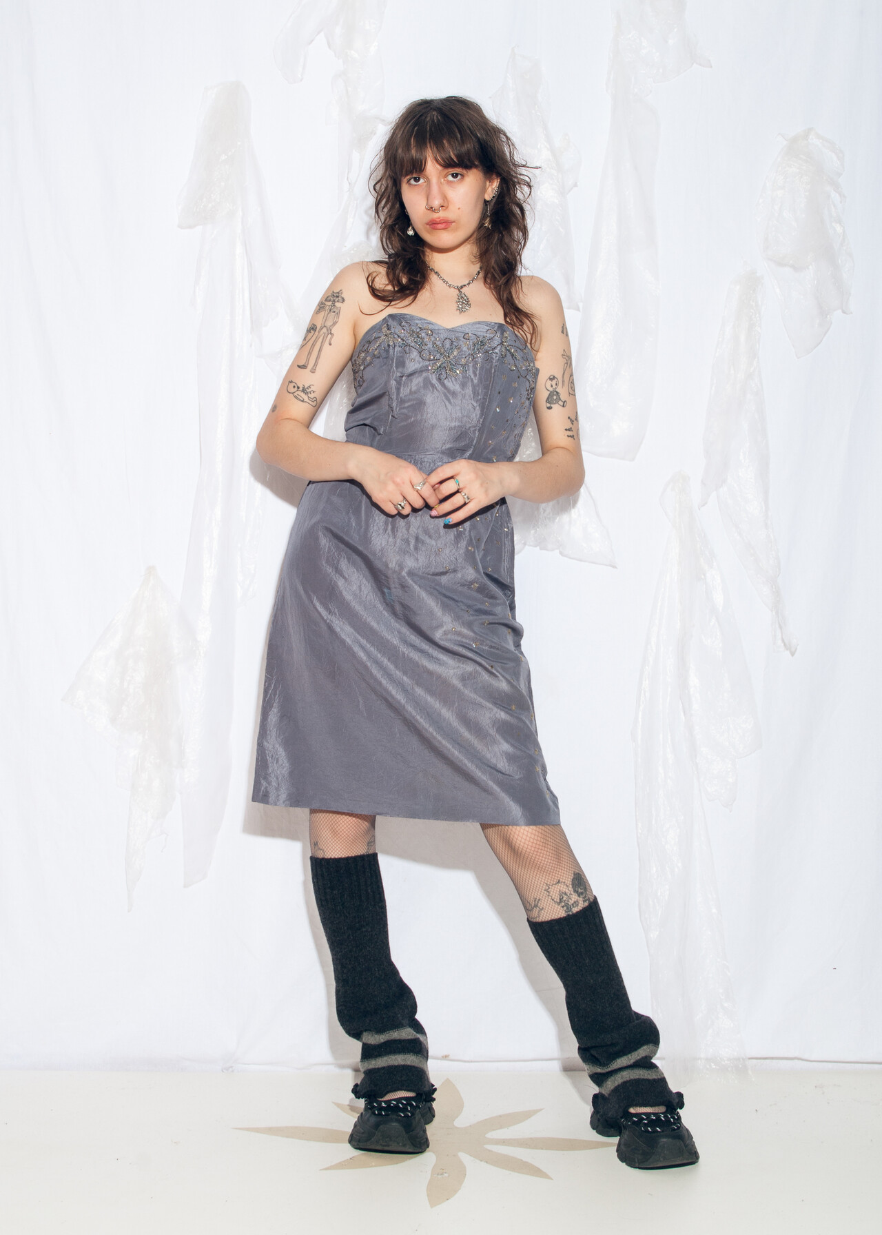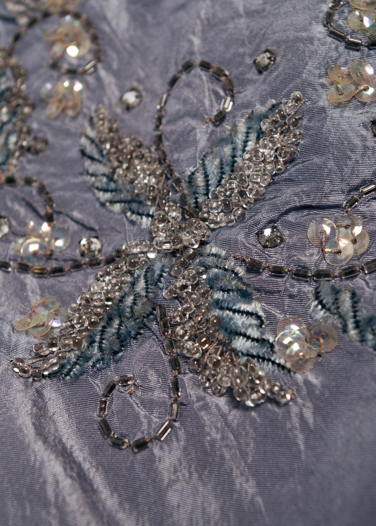 50s vintage dress – a dazzling corset creation adorned with glass beads and sequin embroidery that’ll make your prom night a silver blast!