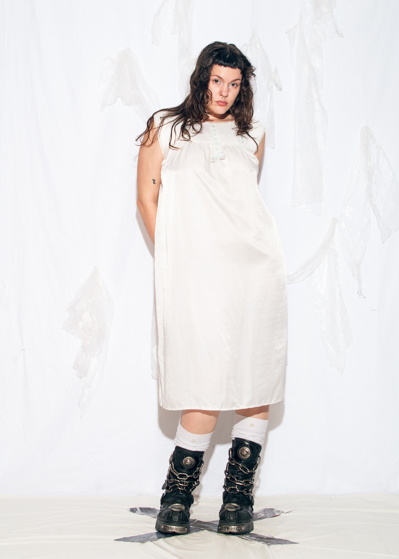 Be the first to review “Vintage 50s Satin Slip Dress in White” Cancel reply