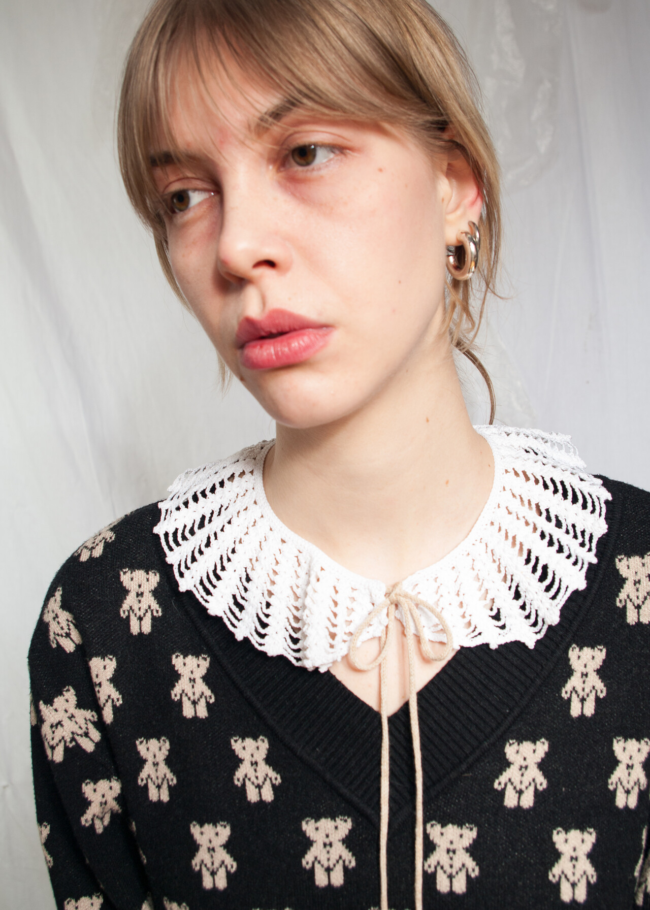 Tags: 60s vintage fashion, crocheted collar, hand crochet accessory, handmade necklace