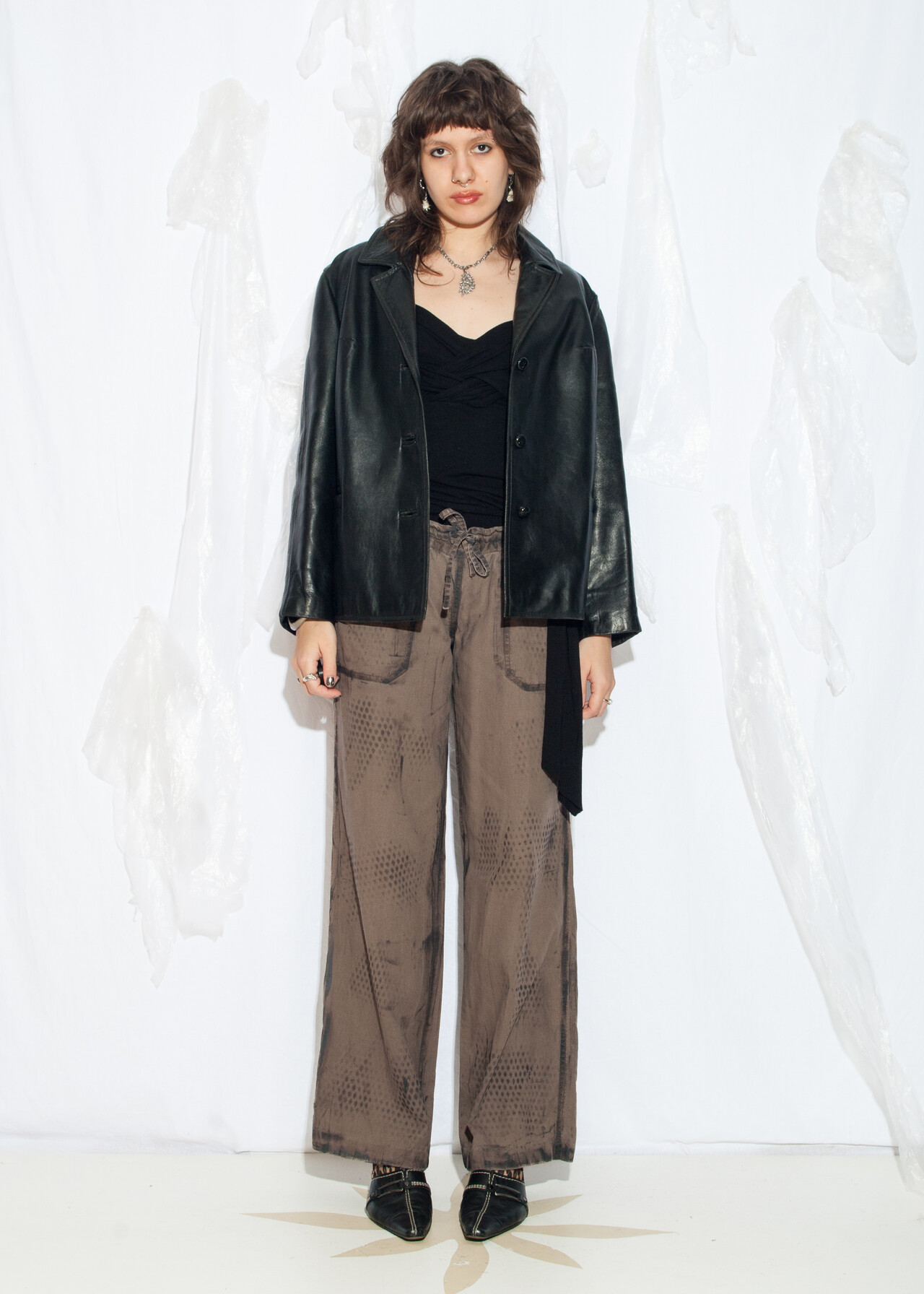Tags: 70s vintage fashion, blazer cut, heavy leather, minimalist outfit, real leather coat, short black jacket, y2k grunge style