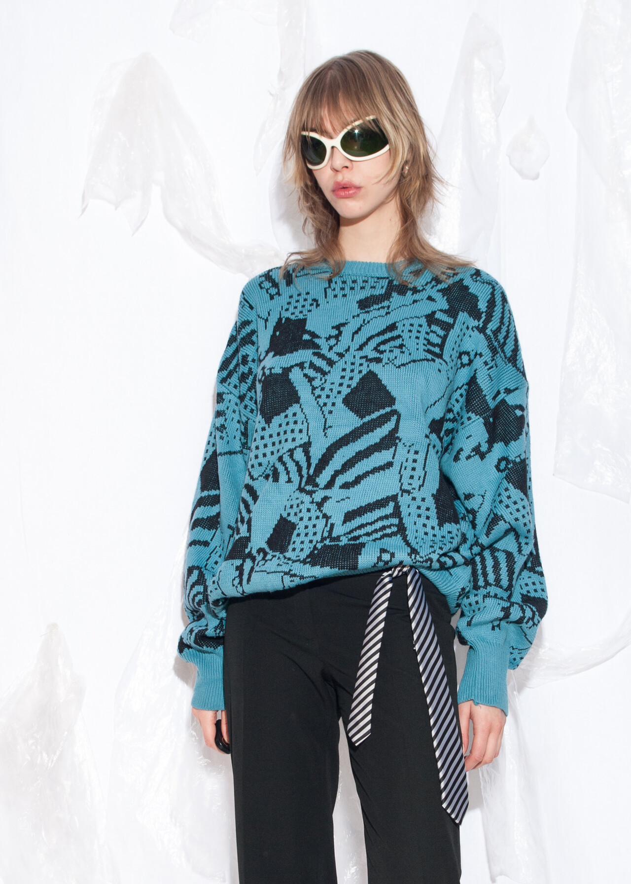 Tags: 80s vintage style, abstract pattern, grandpa sweater, oversized jumper