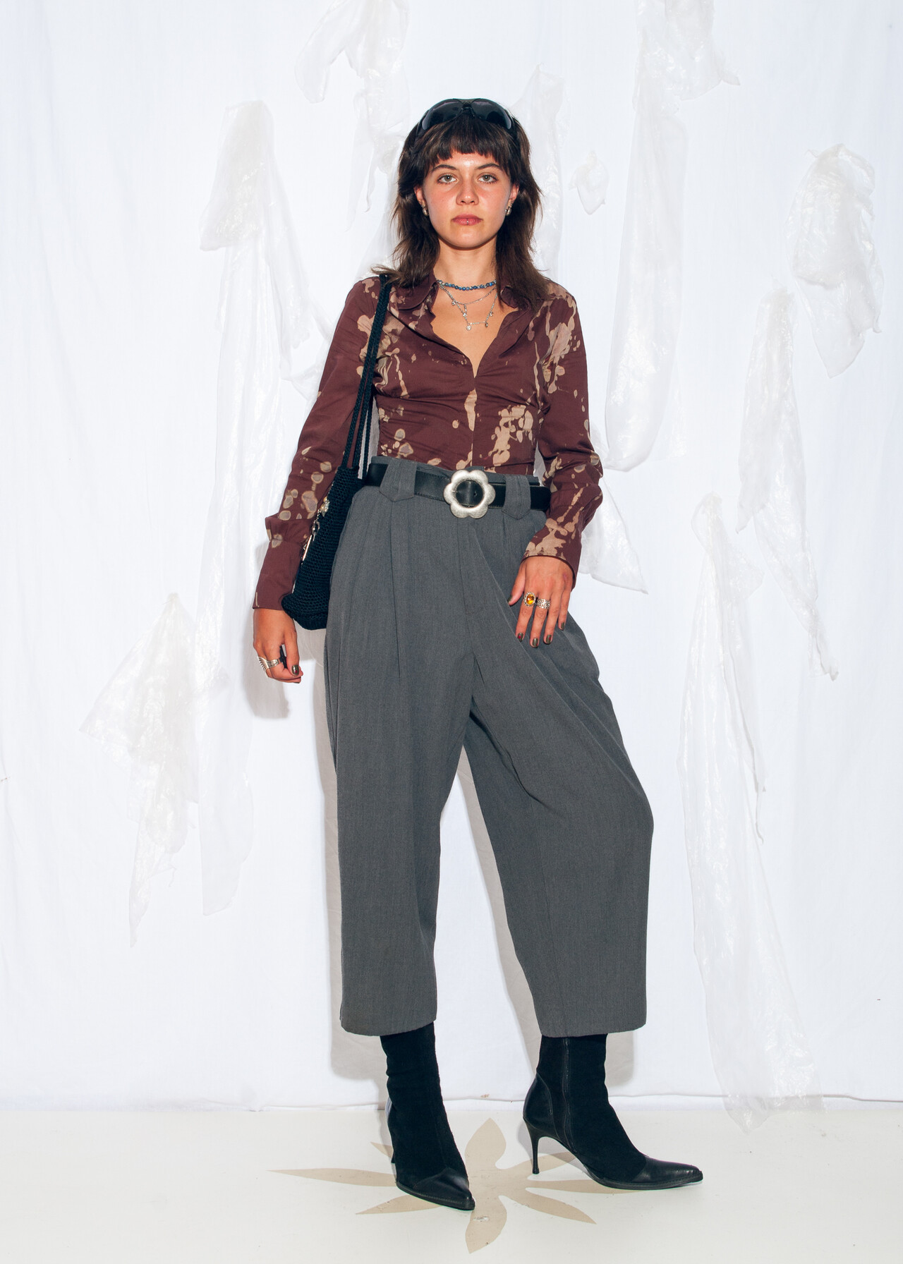 80s vintage trousers – these grey high-waisted carrot pants are your ticket to channeling that office siren look with a dash of dark academia flair, all while making you feel like you’re strutting down a runway.