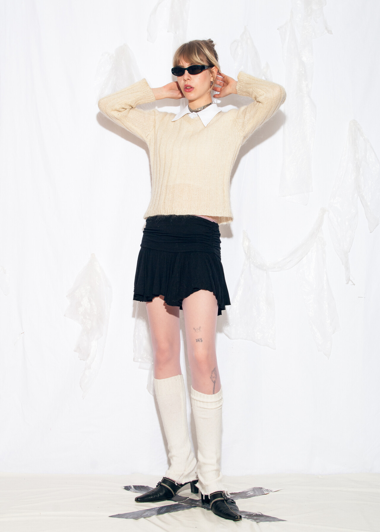 Tags: 80s vintage style, hand knitted, minimalist, wool blend