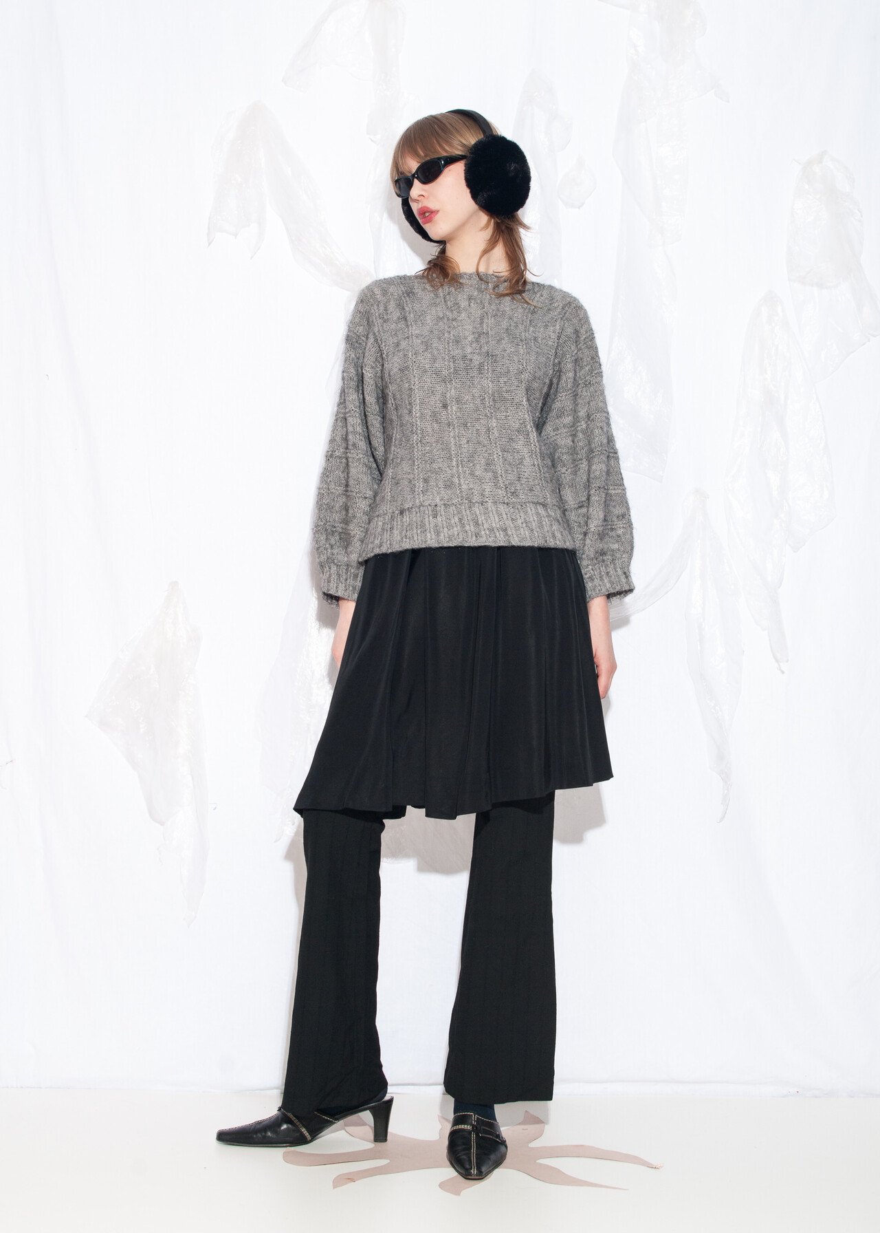 Vintage knit cardigan 90s fluffy grey furry jumper