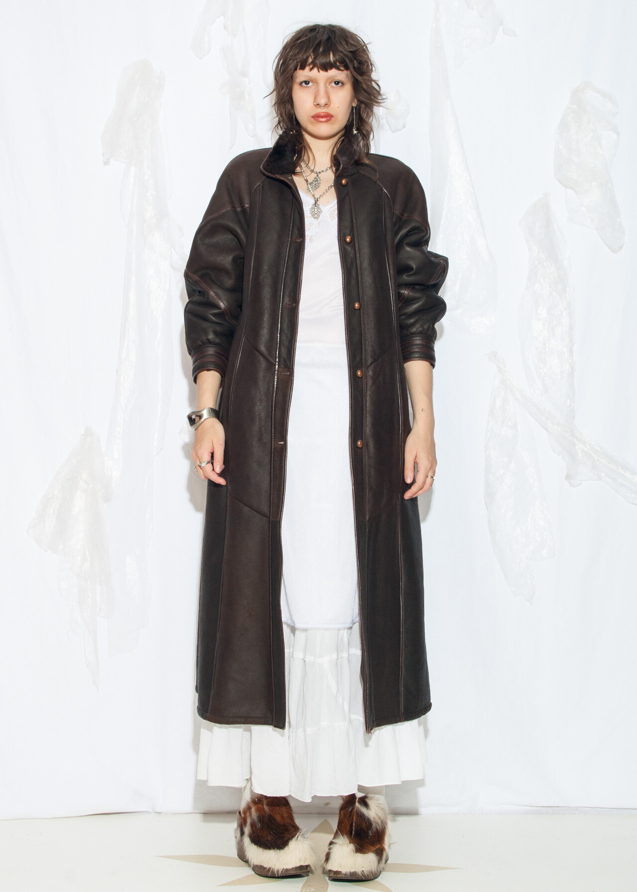 This 80s vintage shearling leather coat is your chance to channel your inner Penny Lane while swaddled in genuine brown suede and humour.