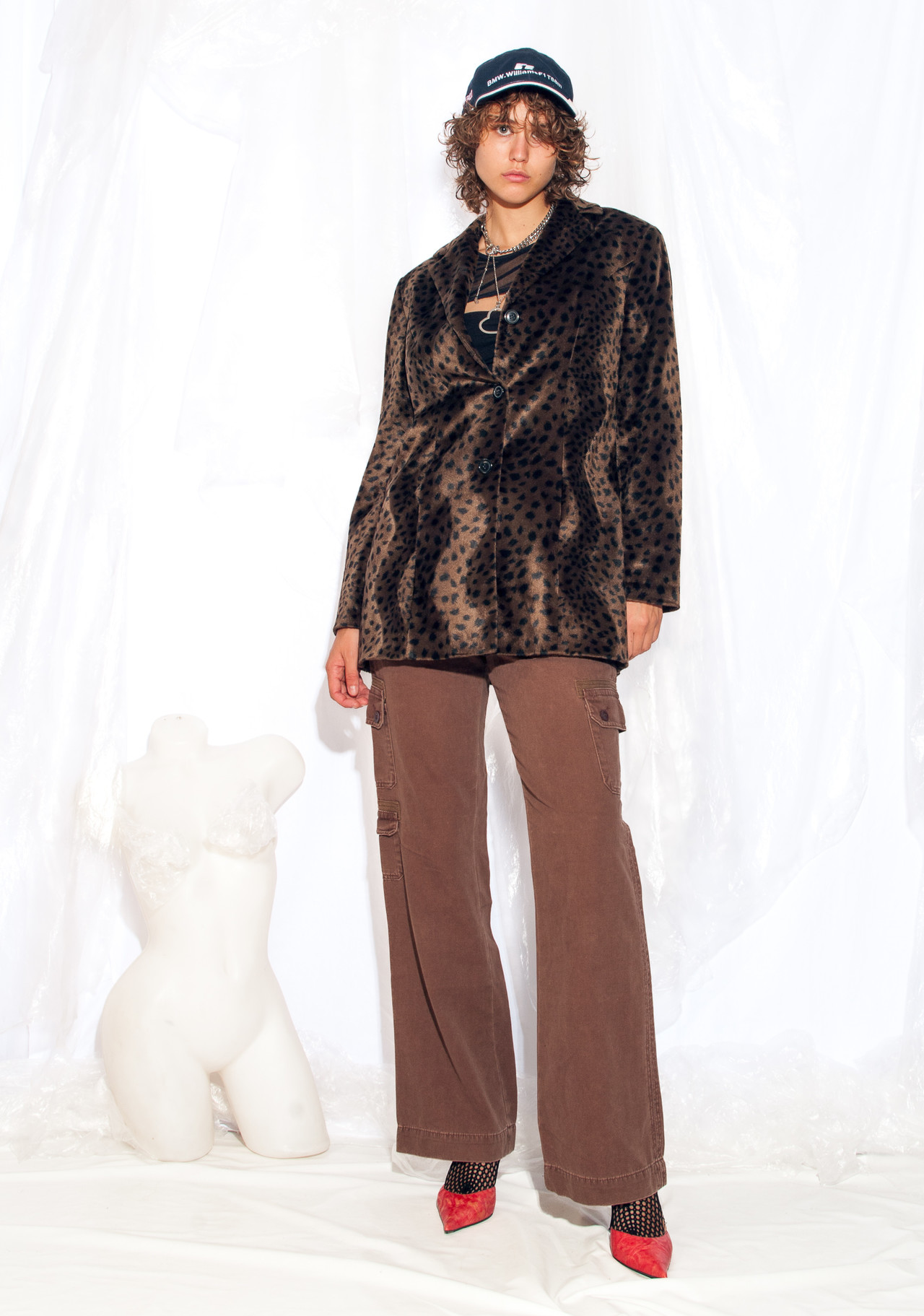 Vintage 90s Blazer Coat in Brown Leopard Plush