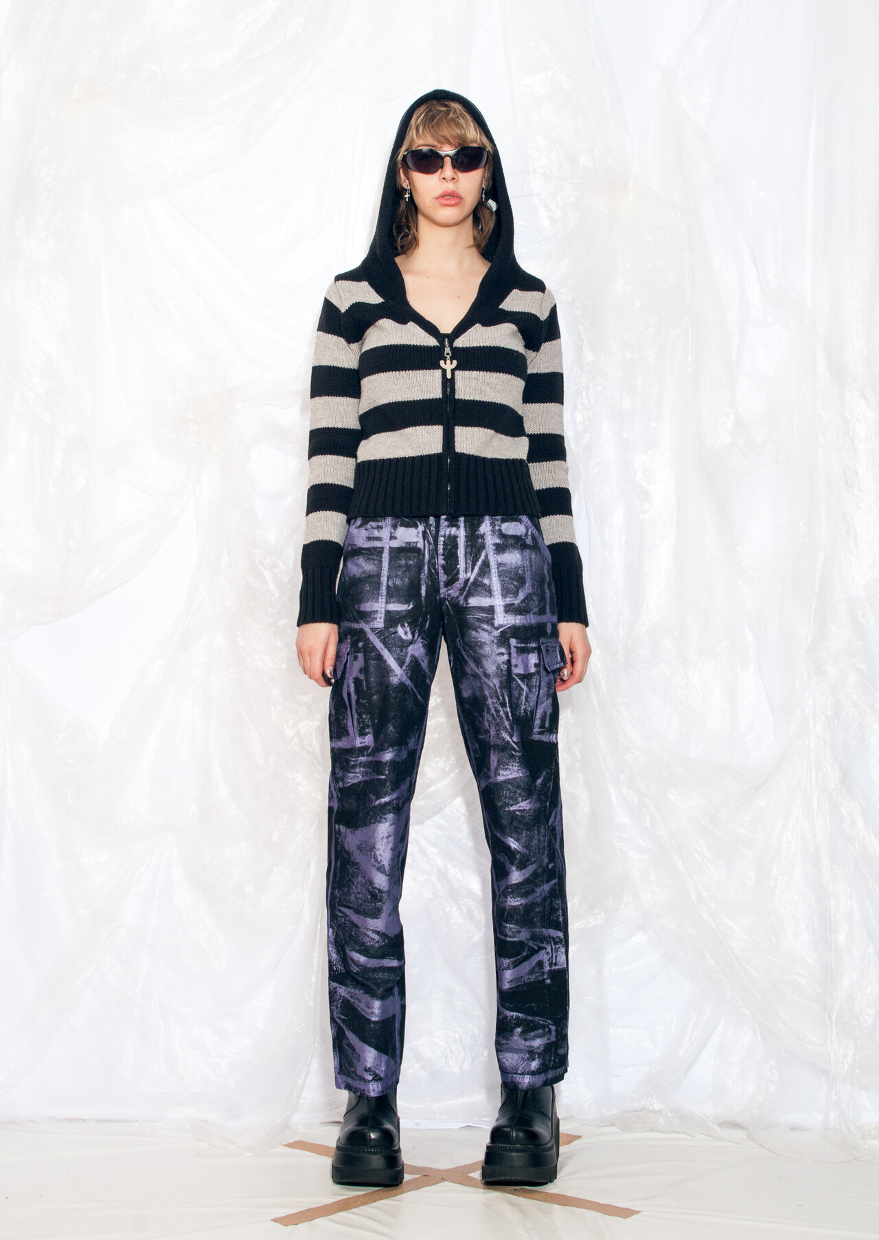 Vintage 90s Cargo Trousers in Purple Reworked Hand Painted
