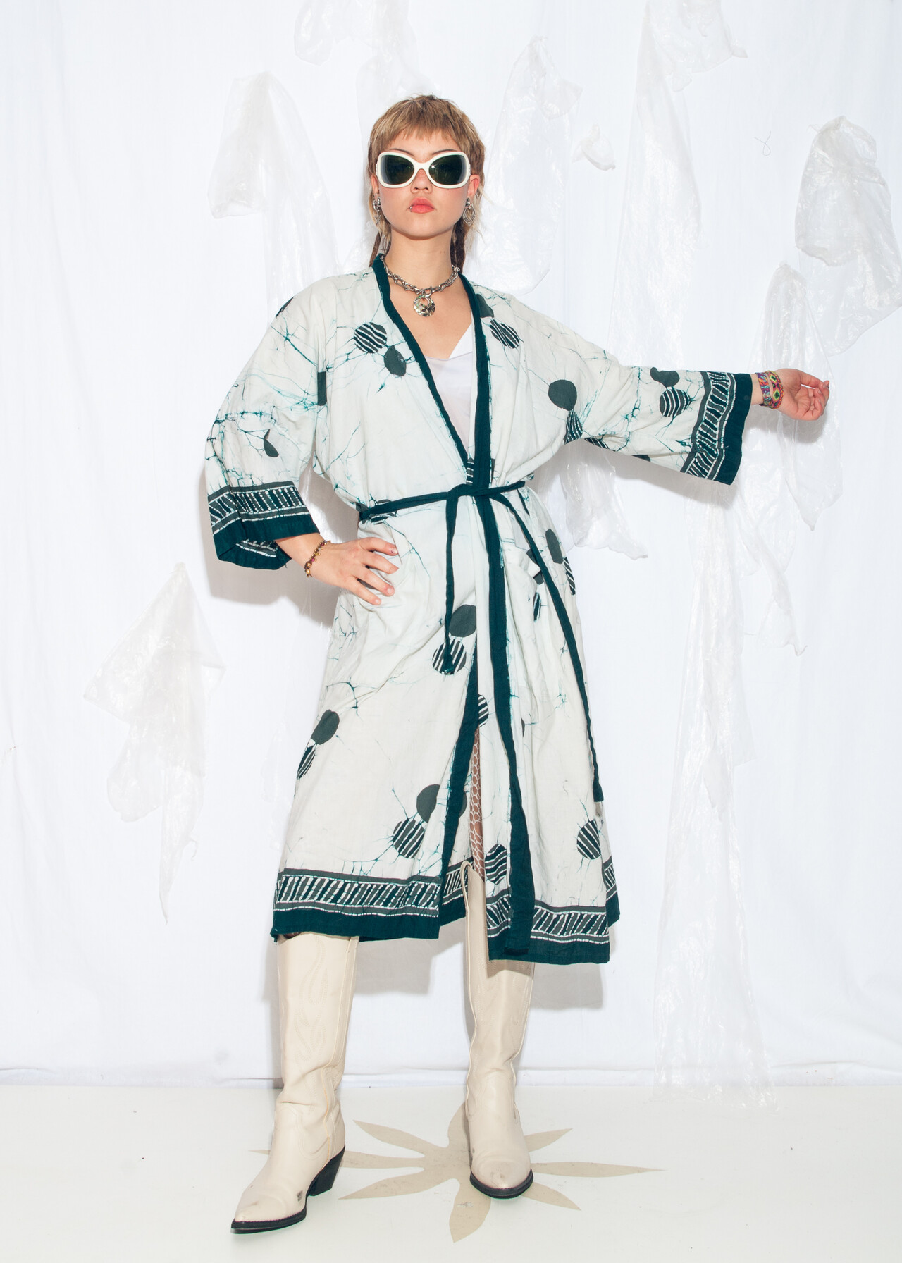 90s vintage cotton robe coat – the ultimate festival kimono for when you’re feeling like a green fashion wizard from the era of dial-up and boy bands.