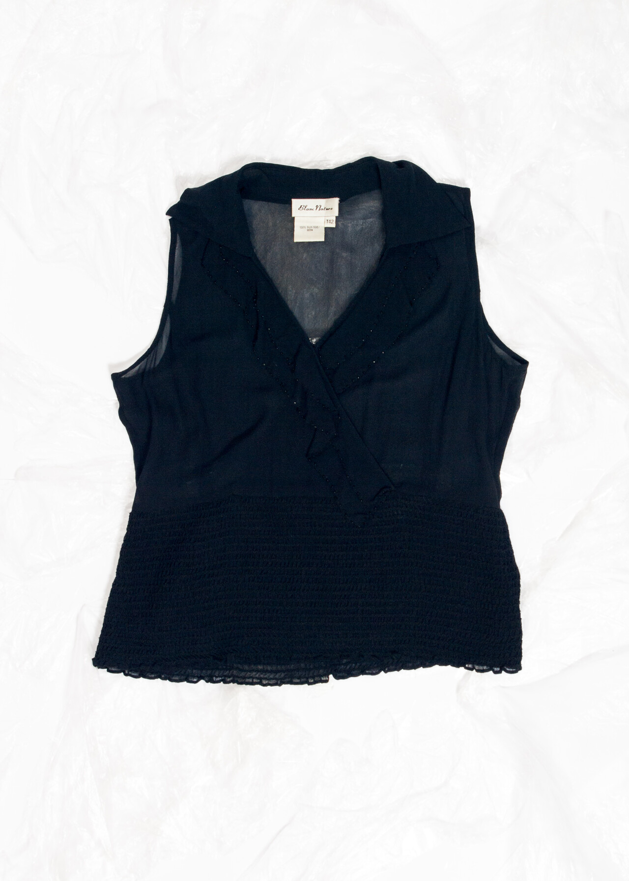 Be the first to review “Vintage 90s Frilly Silk Top in Black” Cancel reply